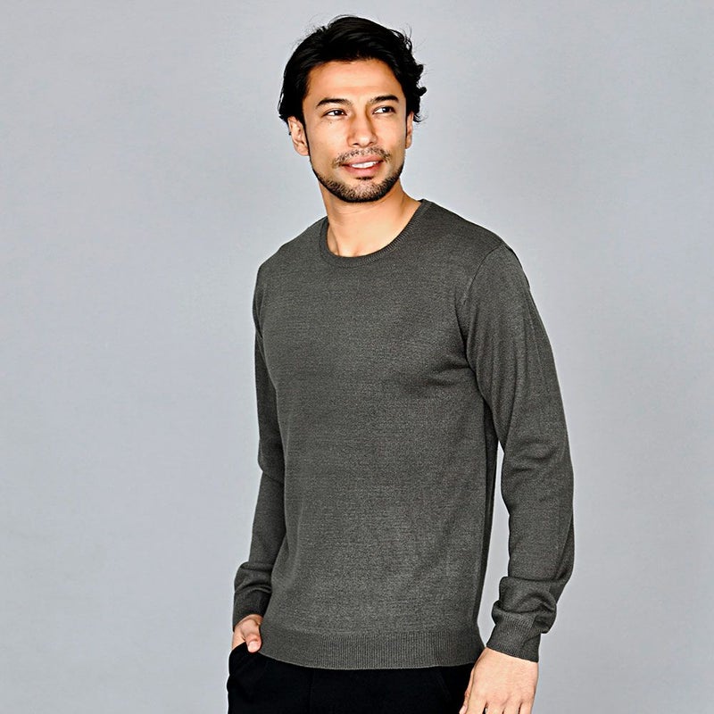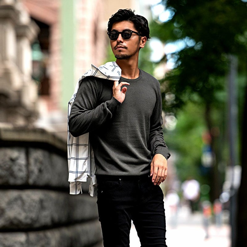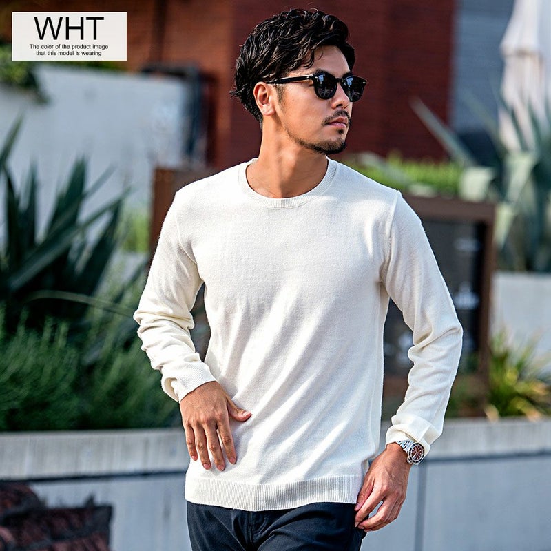 心地良い肌触りでカシミヤのような風合いのニット生地を採用したクルーネックセーター。