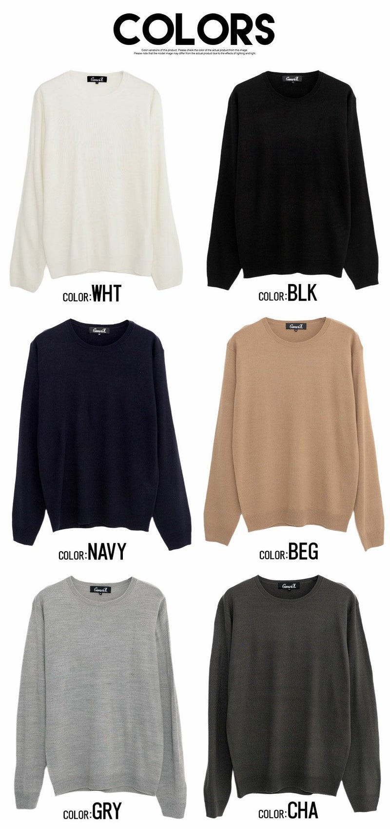 ホワイト/ブラック/ネイビー/ベージュ/グレー/チャコール