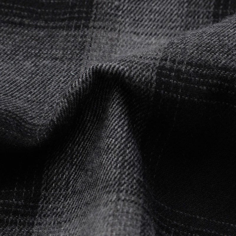 徐々に色の濃淡が変化し、まるで他の色がしみ込んだように表情が移り変わるオンブレチェック柄が特徴的で、シンプルながらも存在感のある仕上がり。