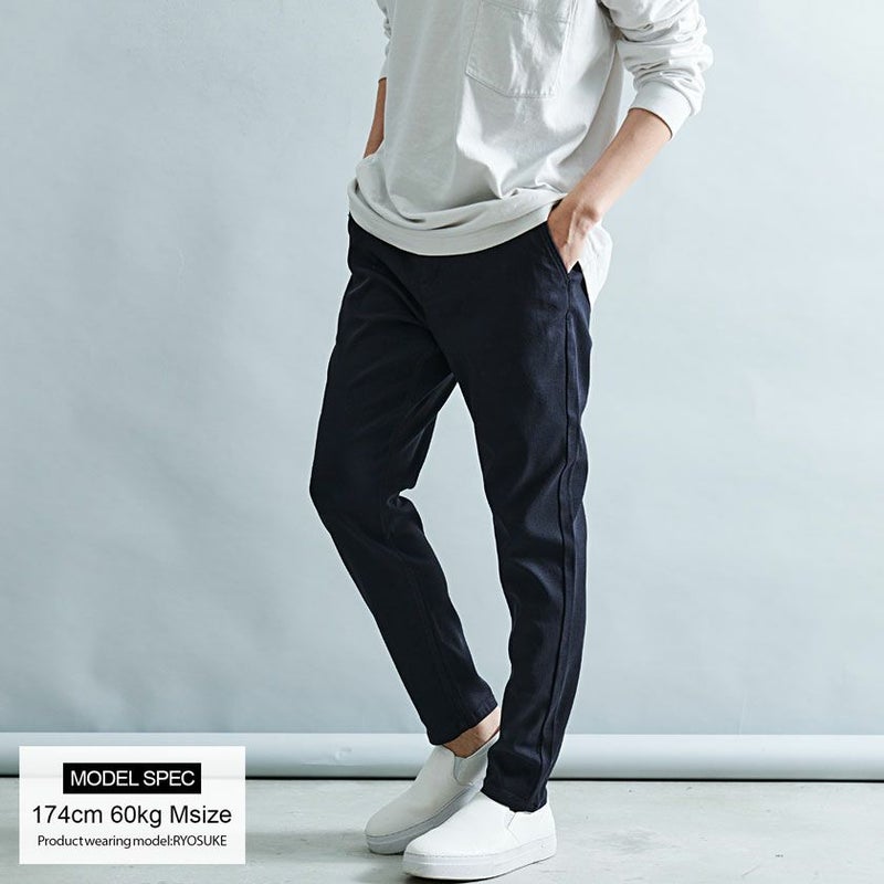 腰まわりからわたりにかけて余裕をもたせ、キレイなラインが出る様にシルエットにこだわった大人のデザイン VICCI(ビッチ)スーパーストレッチスリムテーパードアンクルパンツ/全4色