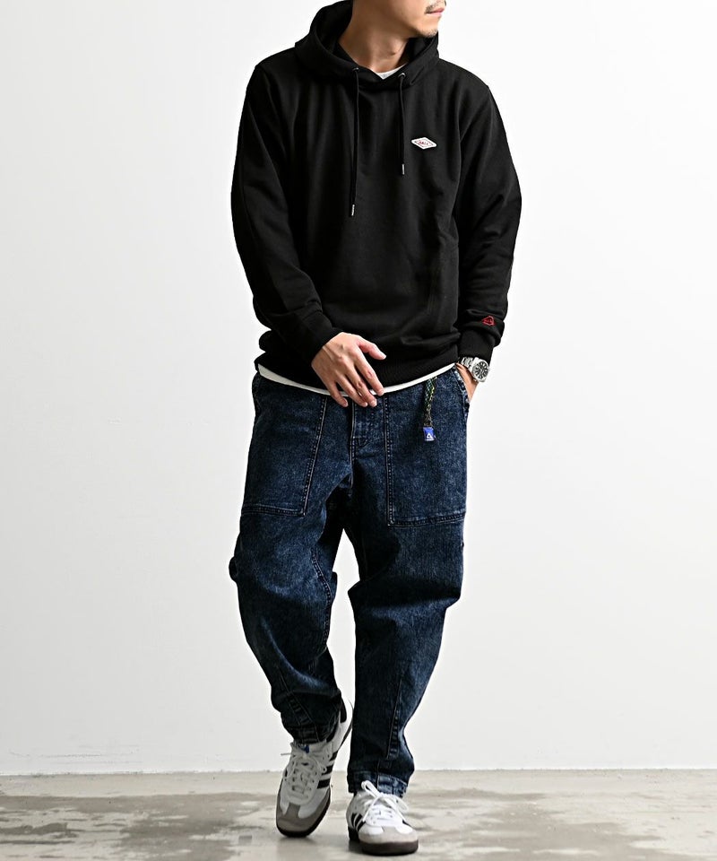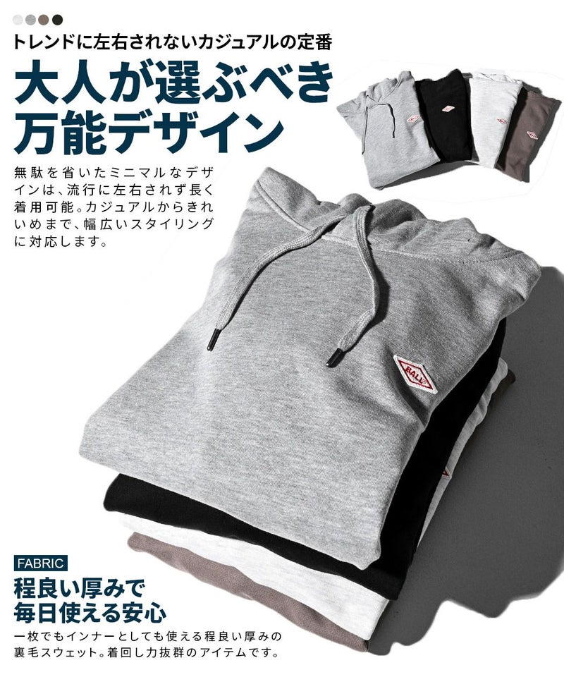 柔らかなスウェット素材を使用し、リラックス感のある着心地に仕上げたパーカー。