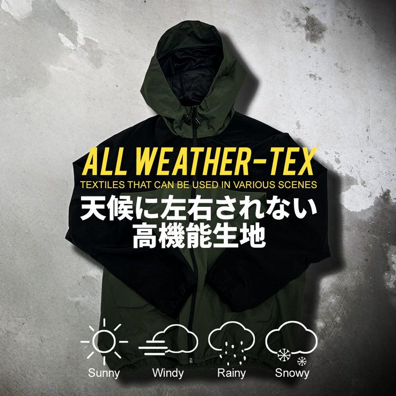 天候やシーンを選ばず快適に着用できる、「ALL WEATHER-TEX」を採用したマウンテンパーカー。