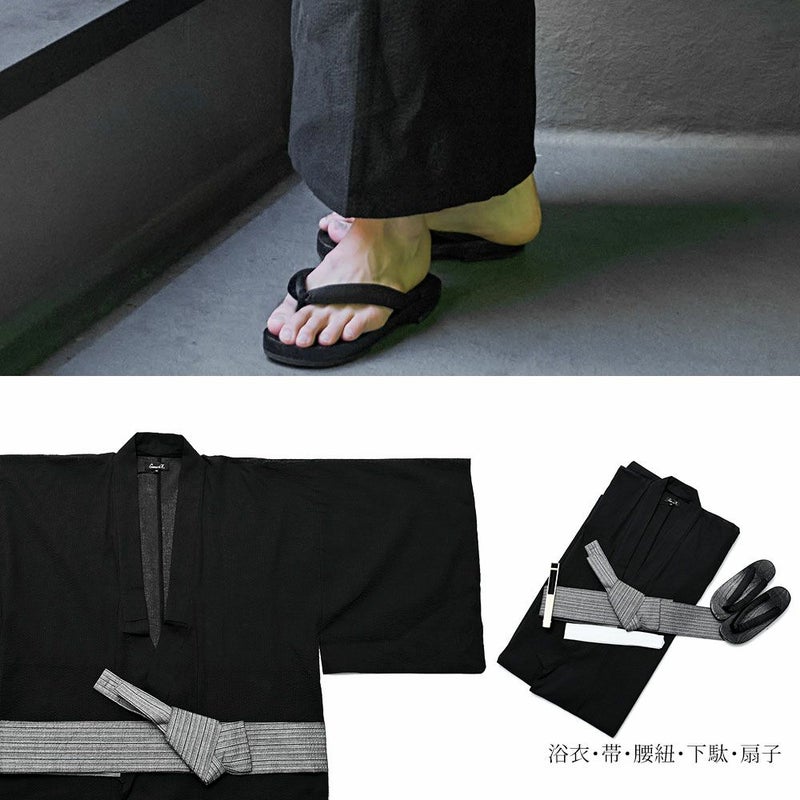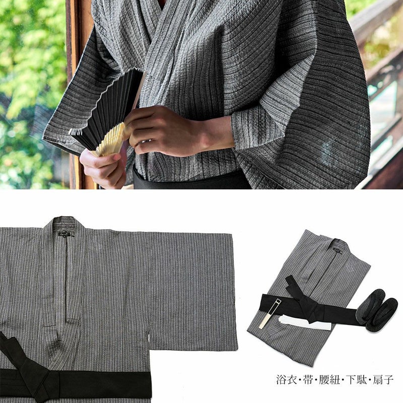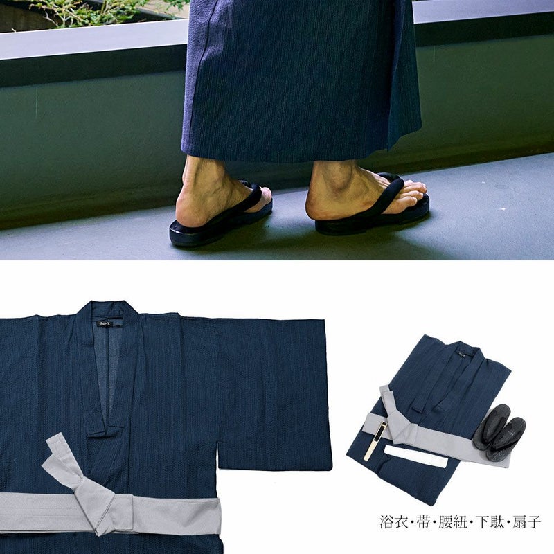 浴衣・帯・腰紐・下駄・扇子がすべて揃っており、届いたその日から粋で涼やかな夏の装いが完成します。