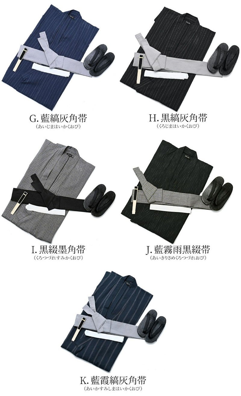 Aタイプ(月夜朱綴帯)/Bタイプ(月夜黒綴帯)/Cタイプ(藍絣黒綴帯)/Dタイプ(藍絣灰角帯)/Eタイプ(墨烏黒綴帯)/Fタイプ(墨烏朱綴帯)/Gタイプ(藍縞灰角帯)/Hタイプ(黒縞灰角帯)/Iタイプ(黒綴墨角帯)/Jタイプ(藍霧雨黒綴帯)/Kタイプ(藍霞縞灰角帯)