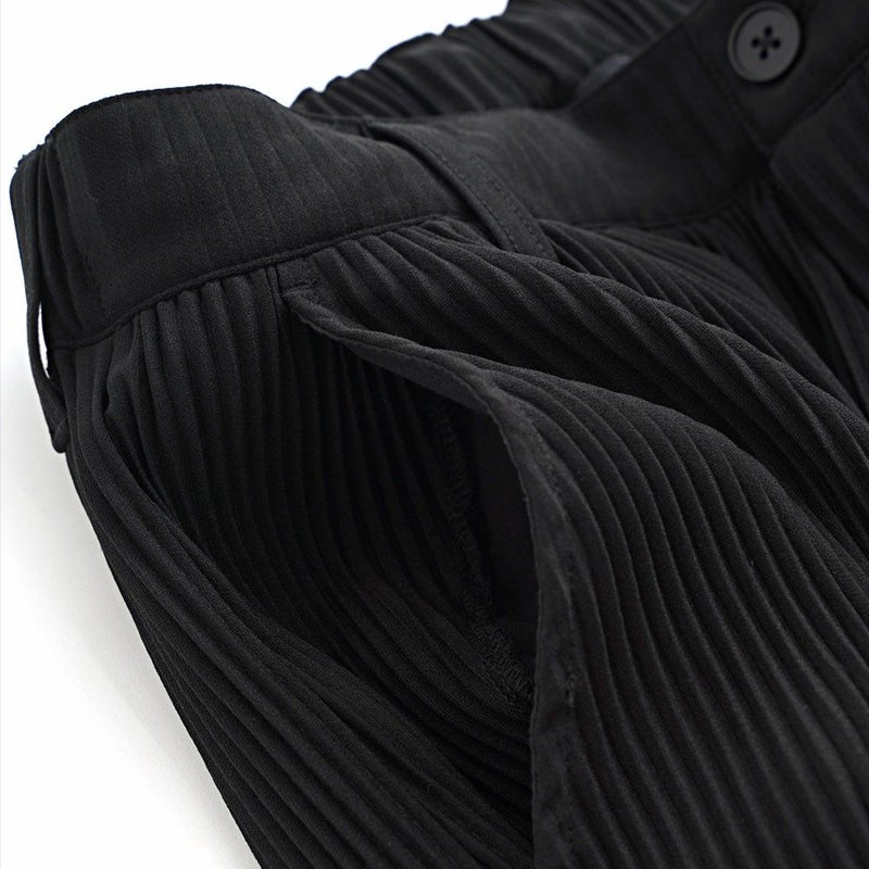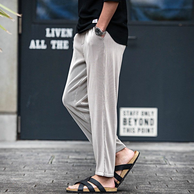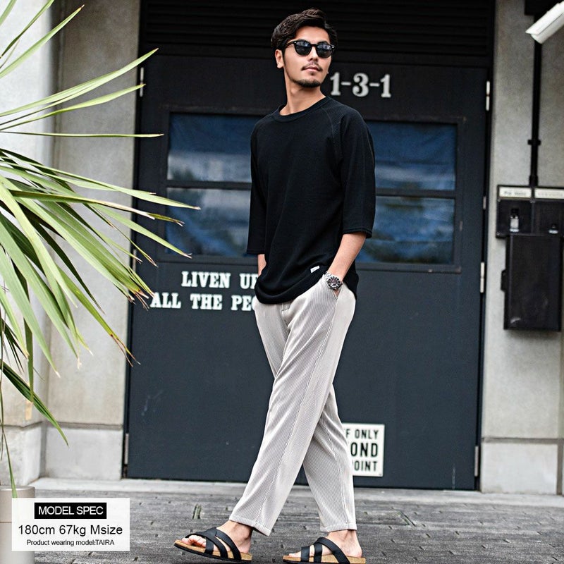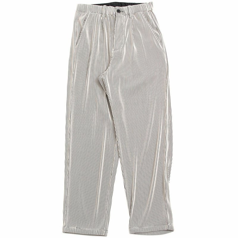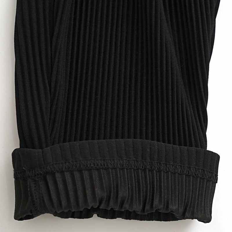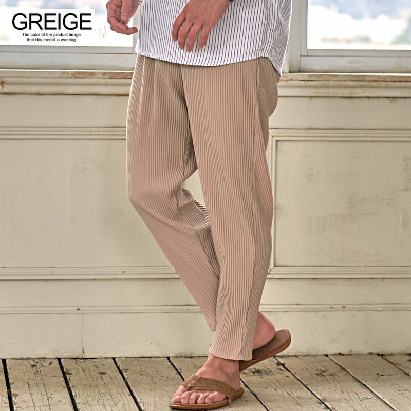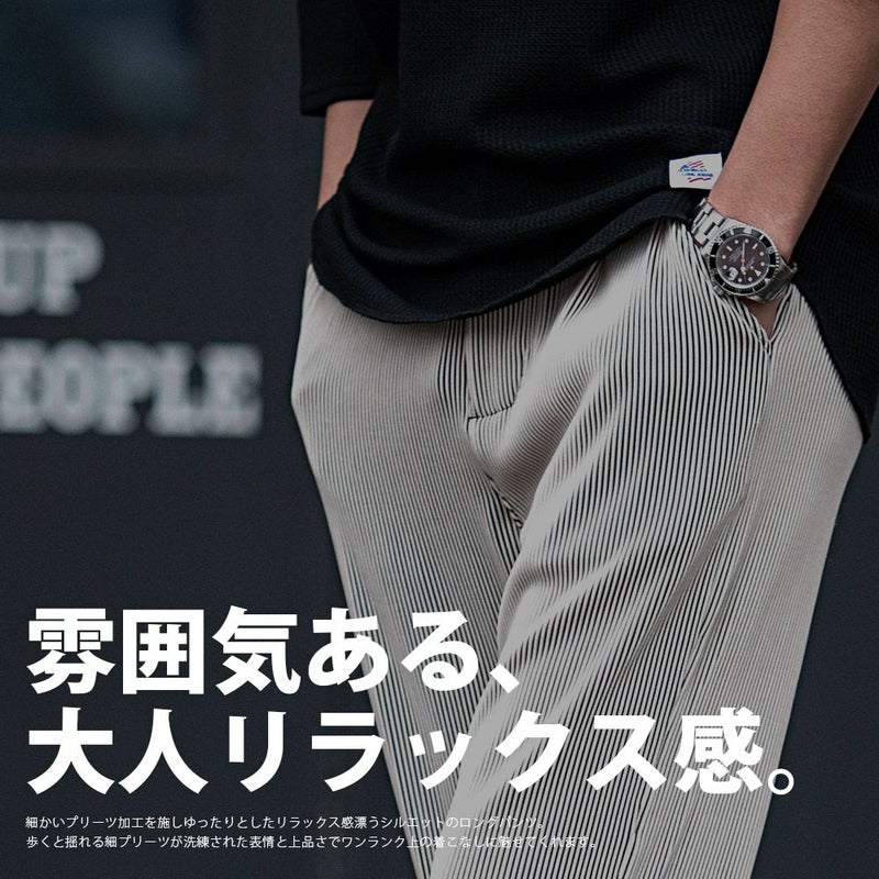 細かいプリーツ加工を施しゆったりとしたリラックス感漂うシルエットのロングパンツ。