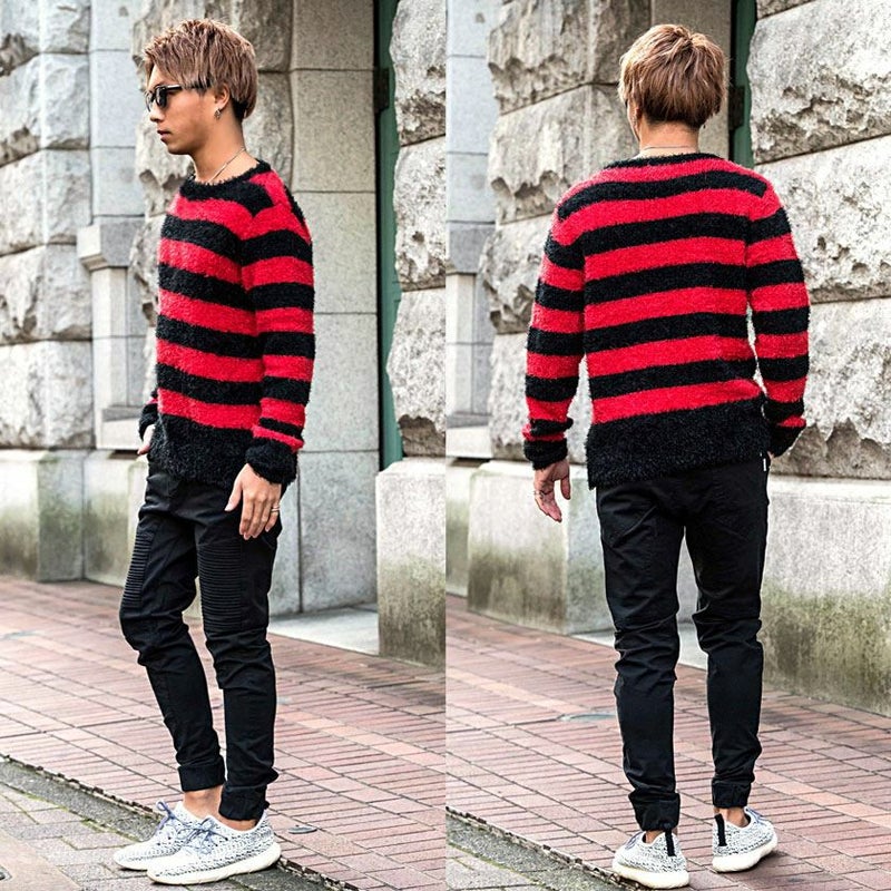 スタッフA(180cm/75kg) 体型:がっちり 普段着用サイズ:L~XL