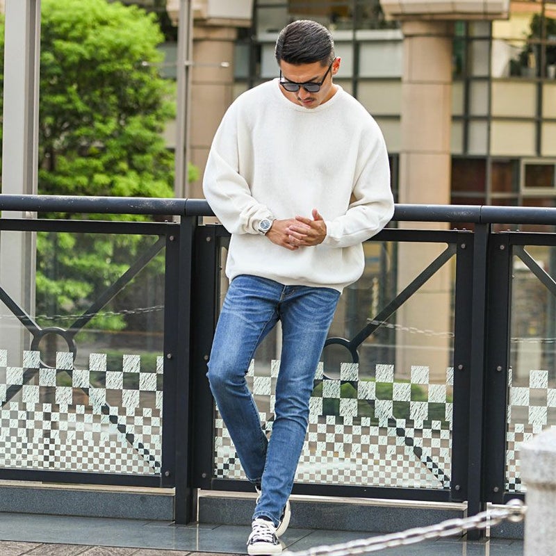 ラフだけどだらしなく見えない、窮屈感のない大人が使えるヌケ感ニット。