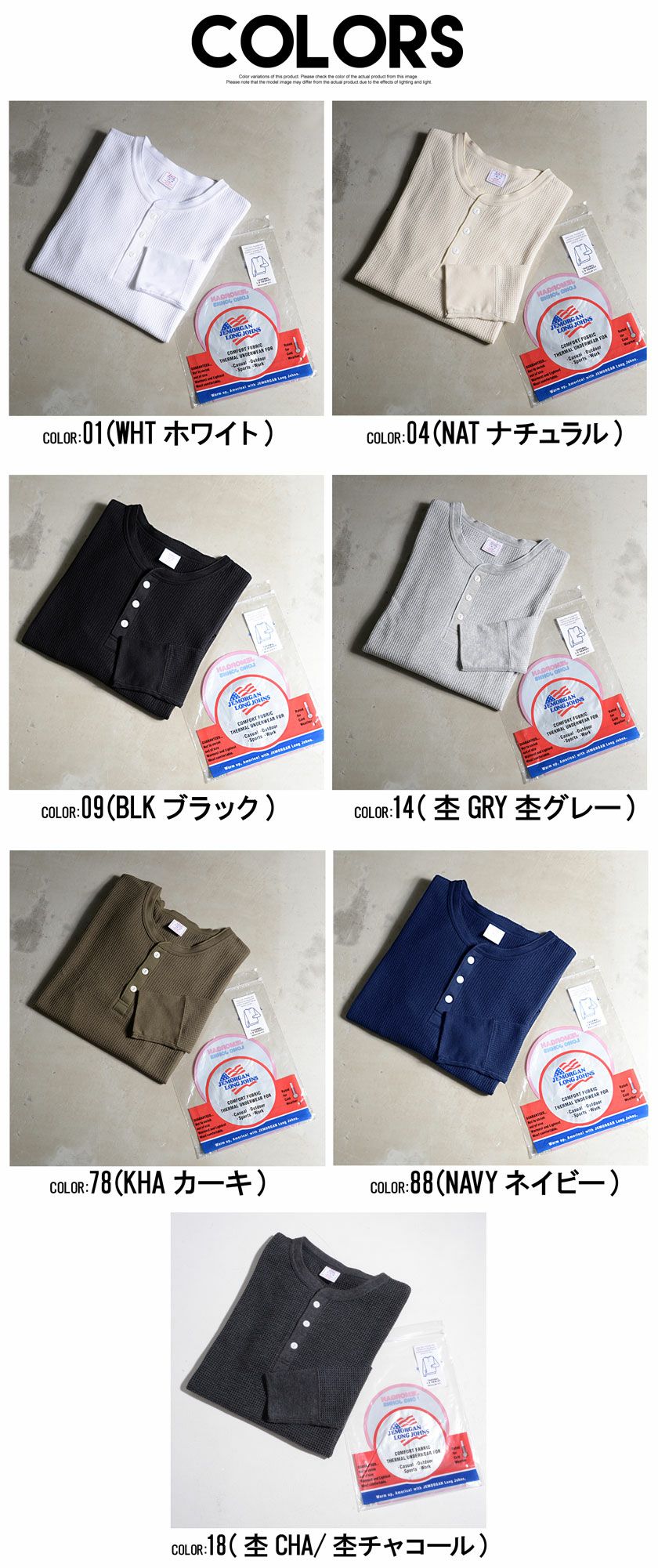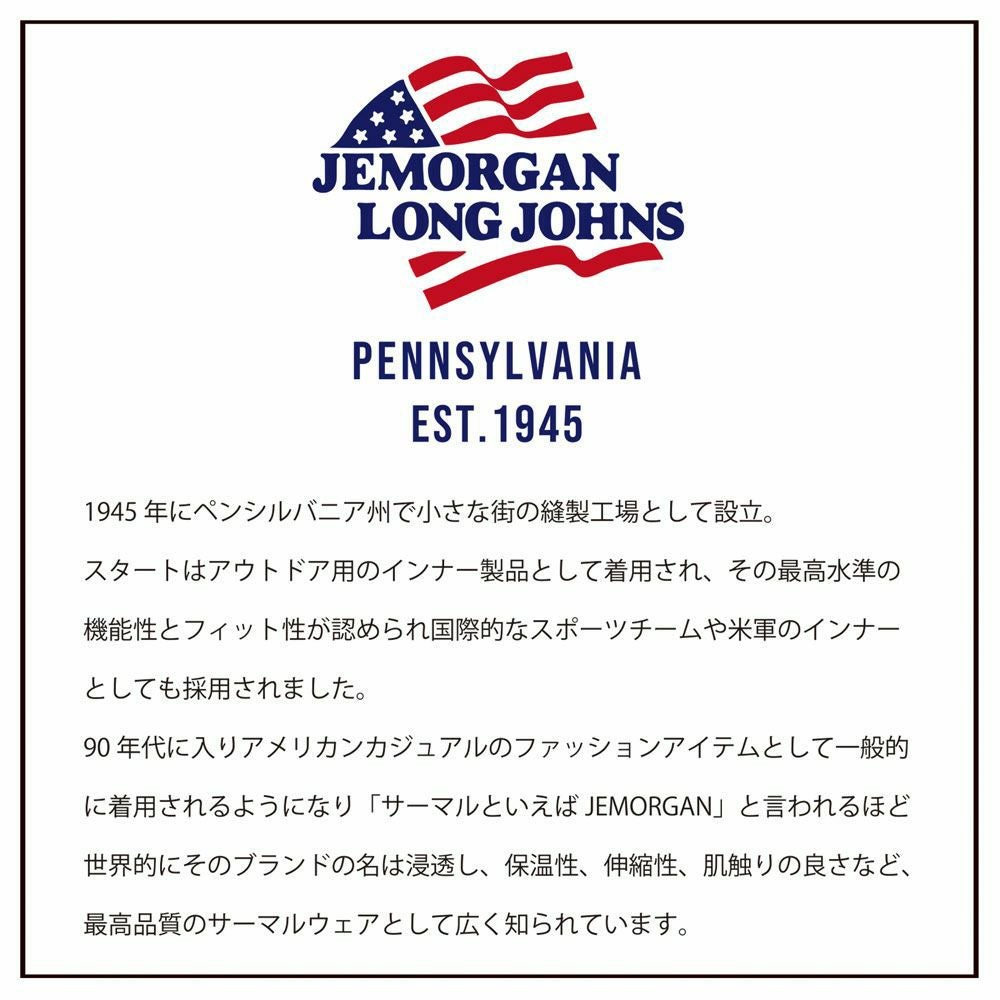 他の画像を見る アメリカンカジュアルのファッションアイテムとして一般的に着用されるようになり、「 サーマルと言えばJEMORGAN 」と言われるほど世界的にそのブランド。 JEMORGAN LONG JOHNS(ジェーイーモーガンロングジョーンズ)サーマルヘンリーネック長袖Tシャツ/全7色 販売価格 ¥ 4,400 税込 カートに入れる お気に入りに登録する