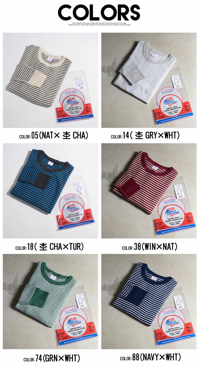 他の画像を見る アメリカンカジュアルのファッションアイテムとして一般的に着用されるようになり、「 サーマルと言えばJEMORGAN 」と言われるほど世界的にそのブランド。 JEMORGAN LONG JOHNS(ジェーイーモーガンロングジョーンズ)ワッフルボーダークルーネック長袖Tシャツ/全6色 販売価格 ¥ 4,730 税込 カートに入れる お気に入りに登録する