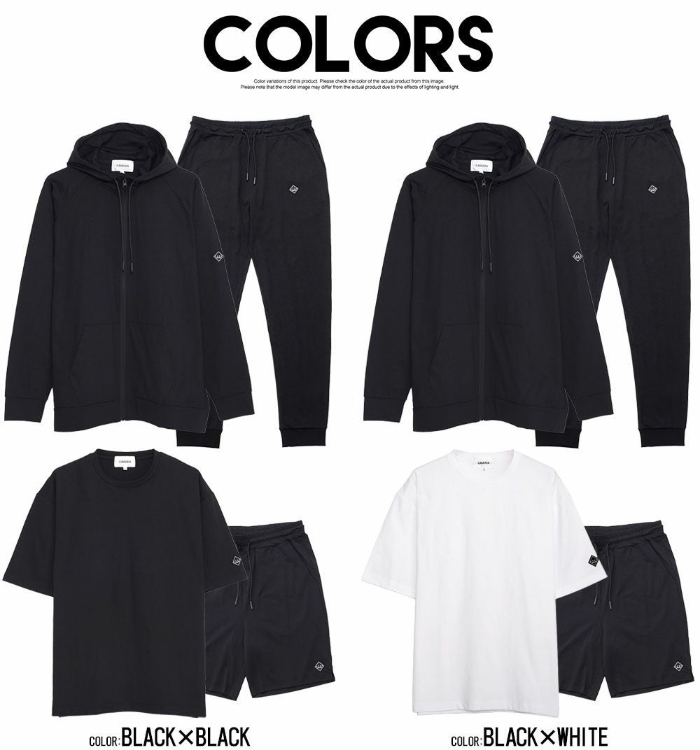 他の画像を見る ジップパーカー・Tシャツ・ショートパンツ・レギンスパンツの豪華4点が揃った、スポーティー&快適なセットアップ。 C.V.R.A(シーブイアールエー)吸水速乾コットンタッチ4点セット(ZIPパーカー・TEE・ショーツ・レギパン)/全2色 販売価格 ¥ 8,990 税込 カートに入れる お気に入りに登録する
