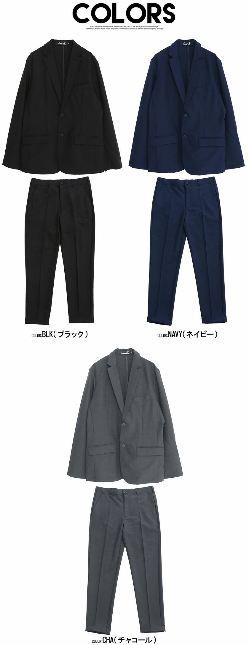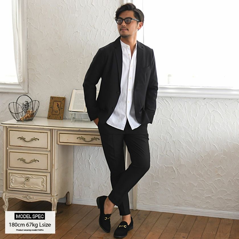 他の画像を見る 送料無料 艶があり高級感溢れるストレッチ素材を使用したテーラードジャケットとテーパードパンツのセットアップ。縫製と仕立てに拘った自宅で洗濯可能な大人のためのアイテム。 【送料無料】CavariA(キャバリア)別注テーラード+アンクルテーパードパンツセットアップ/全4色 販売価格 ¥ 13,990 税込 カートに入れる お気に入りに登録する