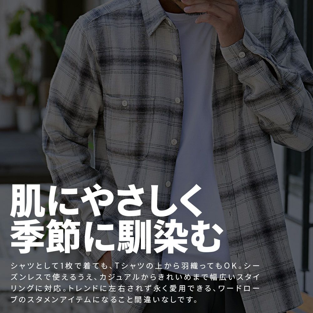 他の画像を見る アメリカのコットンベルトで育てられた高品質なUSAコットンを使用。ふっくらとした柔らかさと、ガシッと頼れる耐久性を兼ね備えた上質な生地感が魅力。 NATURAL STORY(ナチュラルストーリー)USAコットン長袖チェックシャツ/全7色 販売価格 ¥ 4,290 税込 カートに入れる お気に入りに登録する