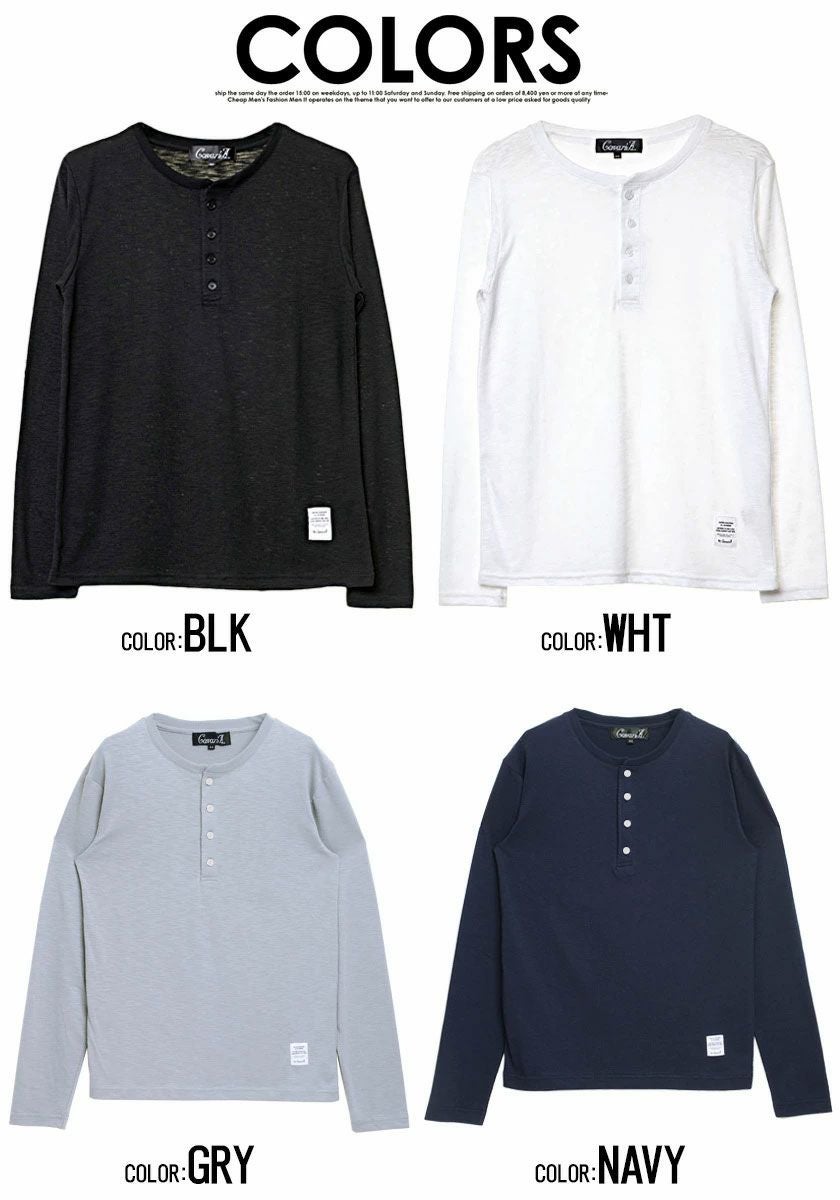 他の画像を見る SALE Tシャツ メンズ ブランド 大人 カジュアル ファッション 長袖 無地 ロンt 長袖Tシャツ シンプル トップス 黒 白 紺 ブラック ホワイト グレー ヘンリーネック 父の日 ギフト プレゼント 【SALE/セール】CavariA(キャバリア)スラブ天竺ヘンリーネック長袖Tシャツ/全7色 通常価格 ¥ 2,480 のところ 販売価格 ¥ 1,980 税込 カートに入れる お気に入りに登録する