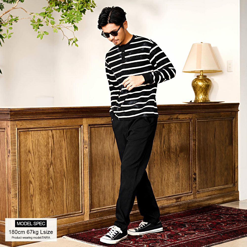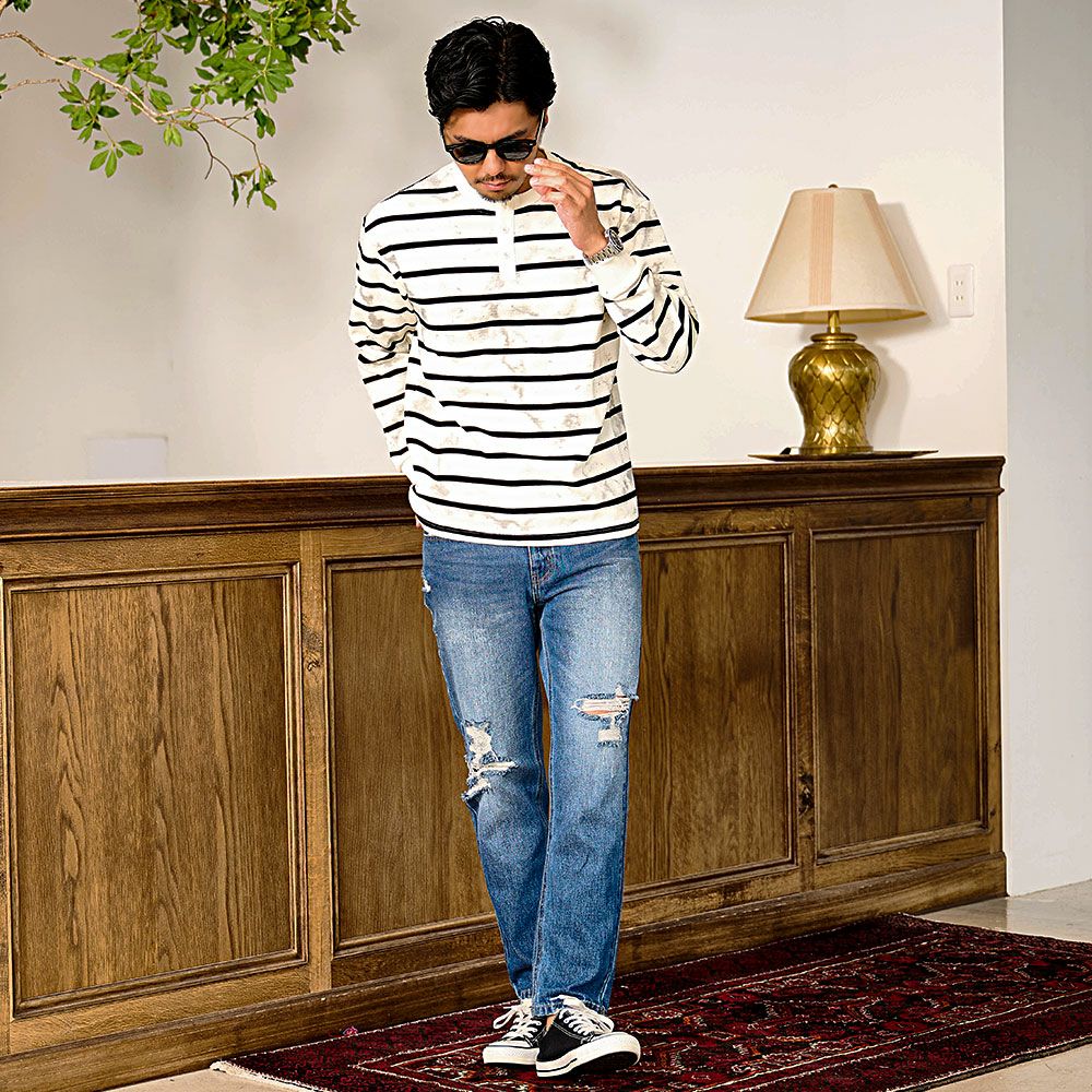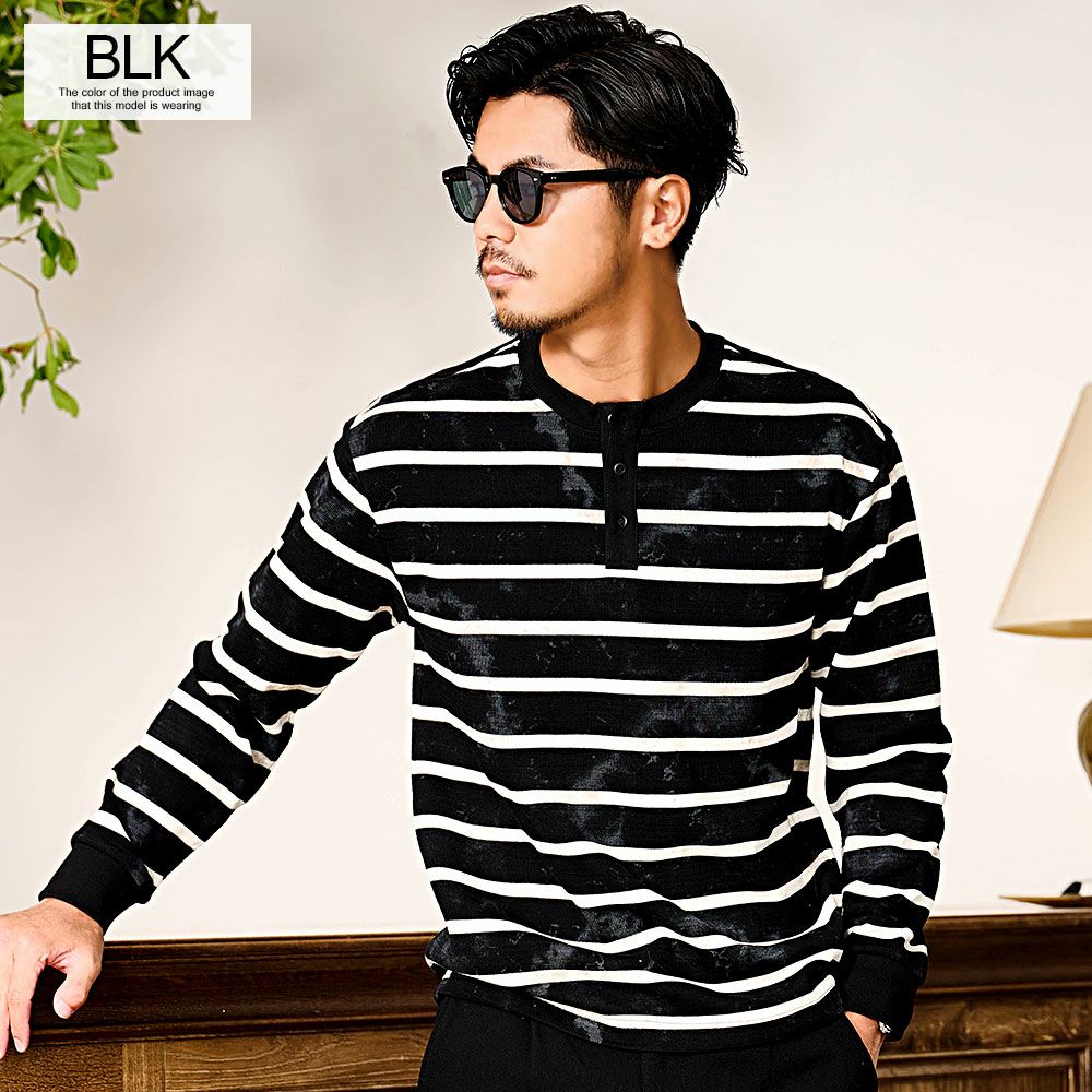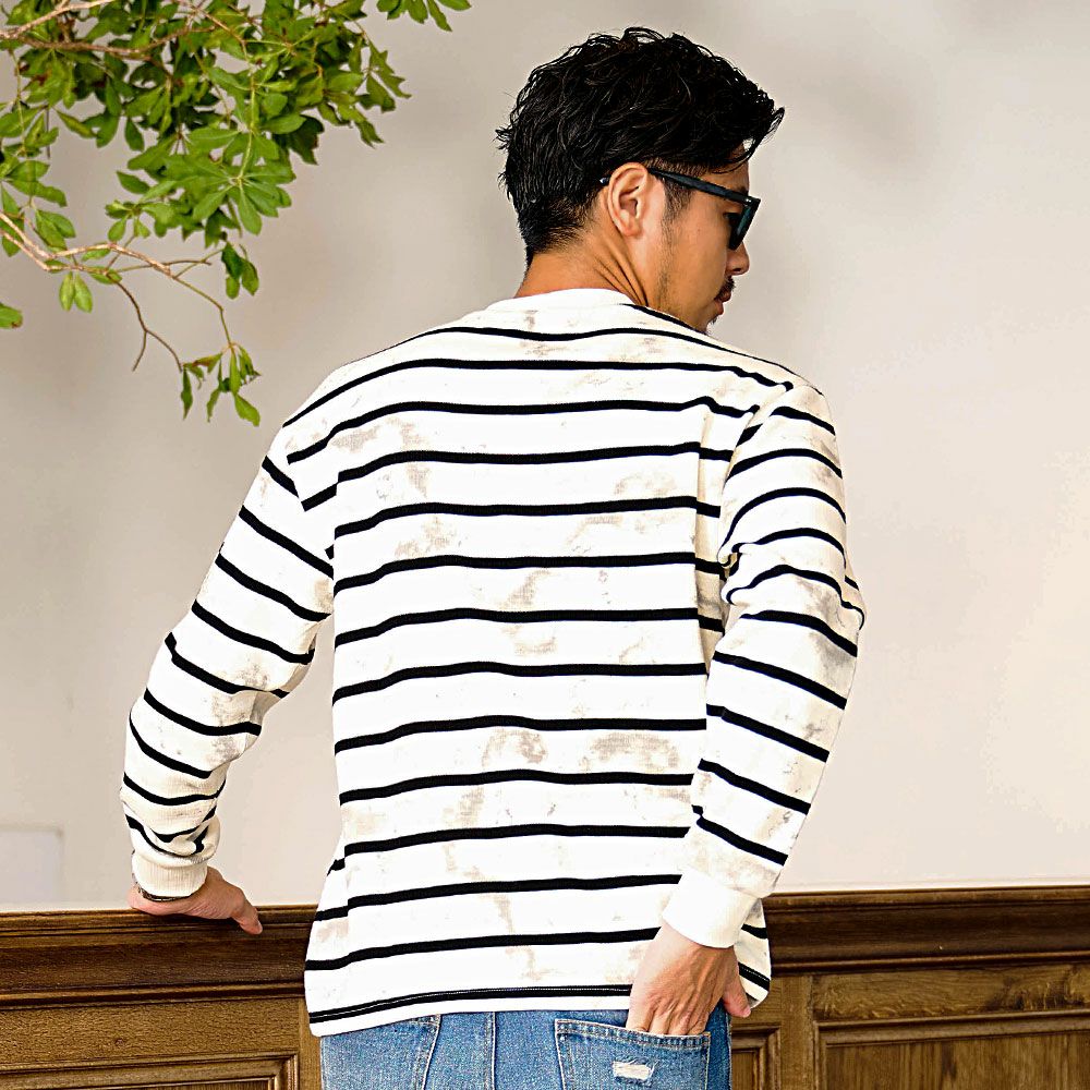 他の画像を見る クラシカルなヘンリーネック×絶妙なかすれ感。ヴィンテージライクな風合いを楽しむボーダーロンT。 BENUSTA(ベヌスタ)汚し加工ボーダーヘンリーネック長袖Tシャツ/全2色 販売価格 ¥ 6,490 税込 カートに入れる お気に入りに登録する