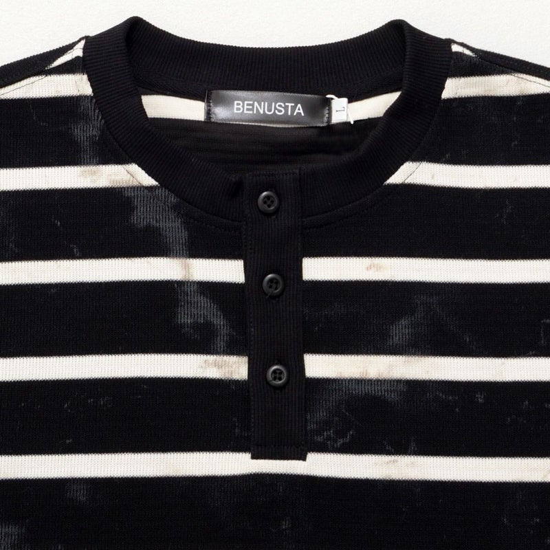 BITTER STORE(ビターストア)にBENUSTA【ベヌスタ】 汚し加工ボーダーヘンリーネック長袖Tシャツが入荷しました。