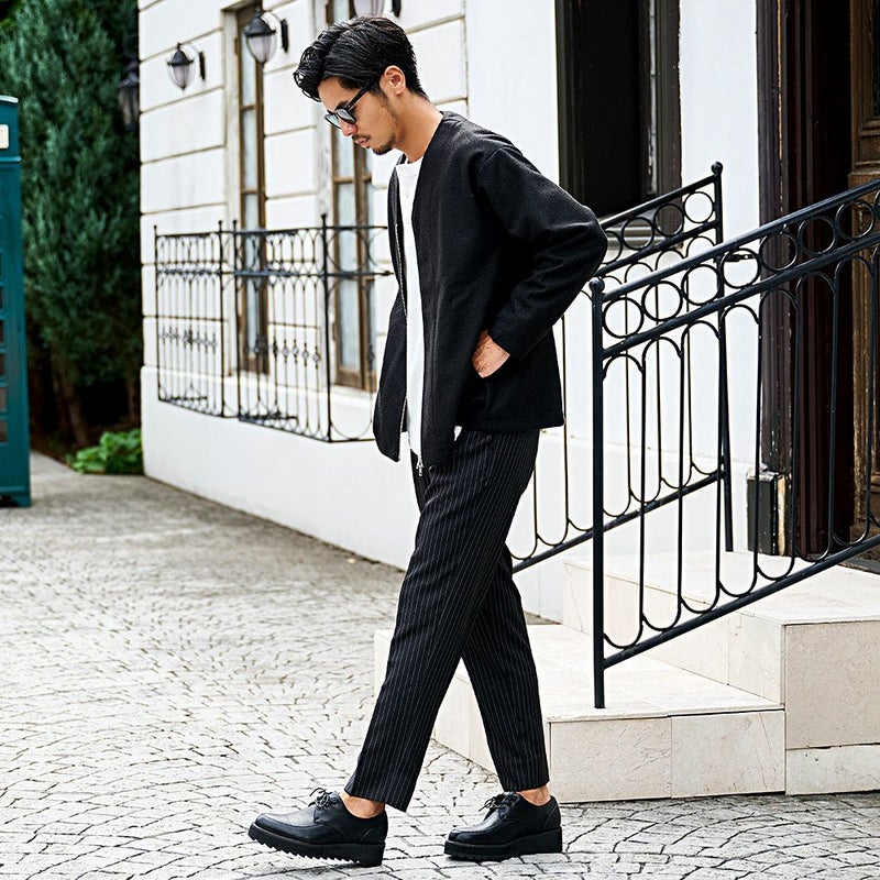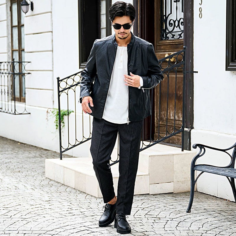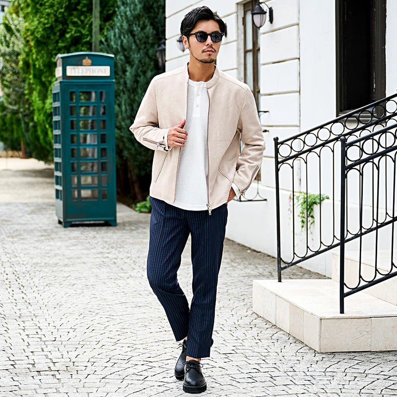 ジャケットとセットアップ風に合わせて、大人のモードスタイルに。