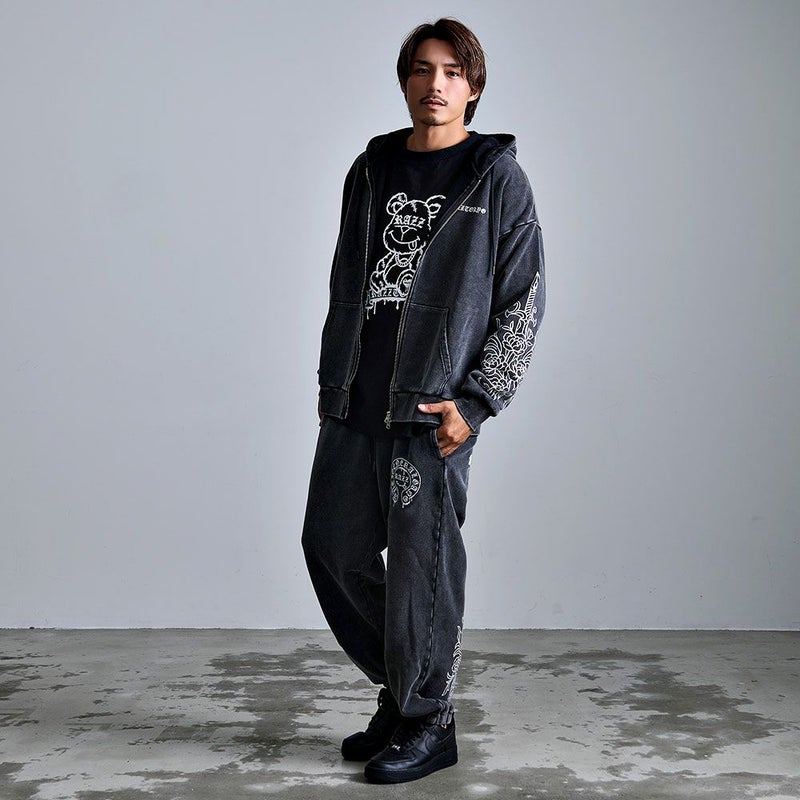 仲間同士で色違いを楽しんだり、同シリーズのスウェットパンツと合わせてセットアップにすることで、統一感あるアーバンストリートスタイルが完成します。