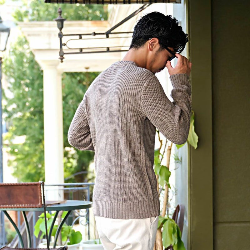 表情豊かな凹凸感が魅力の畦(あぜ)編みニットは、シンプルながらもしっかりと存在感を発揮。