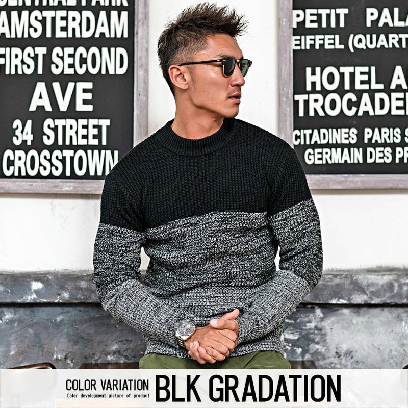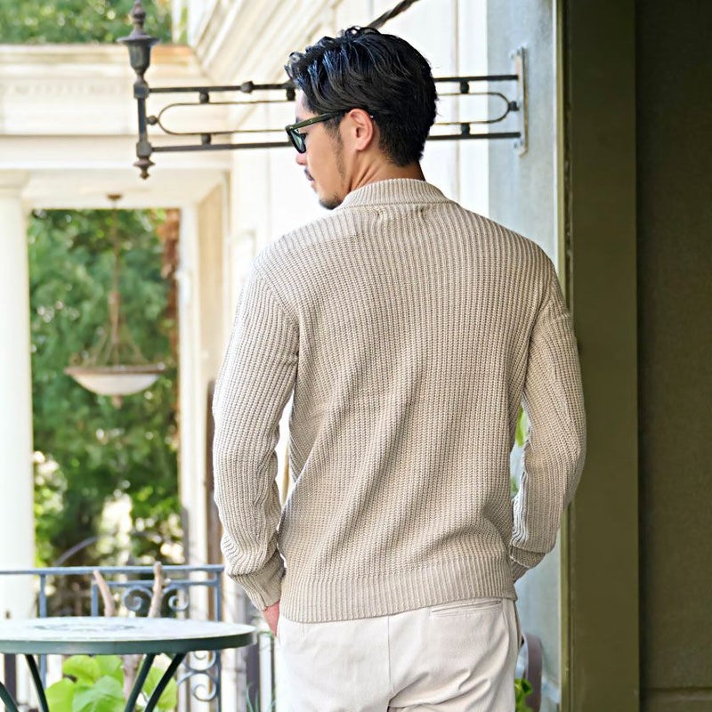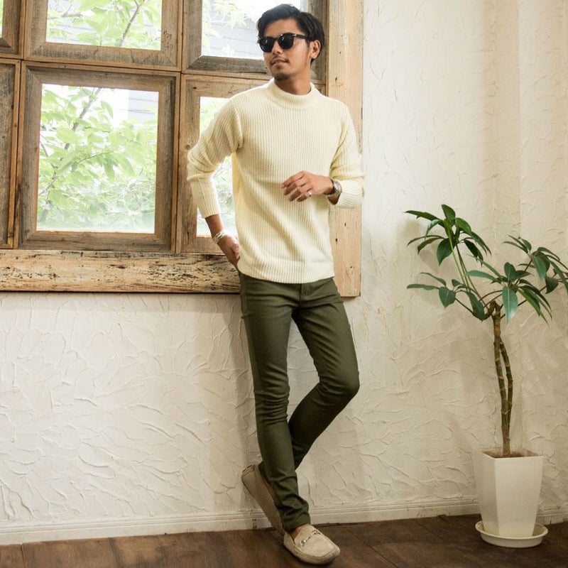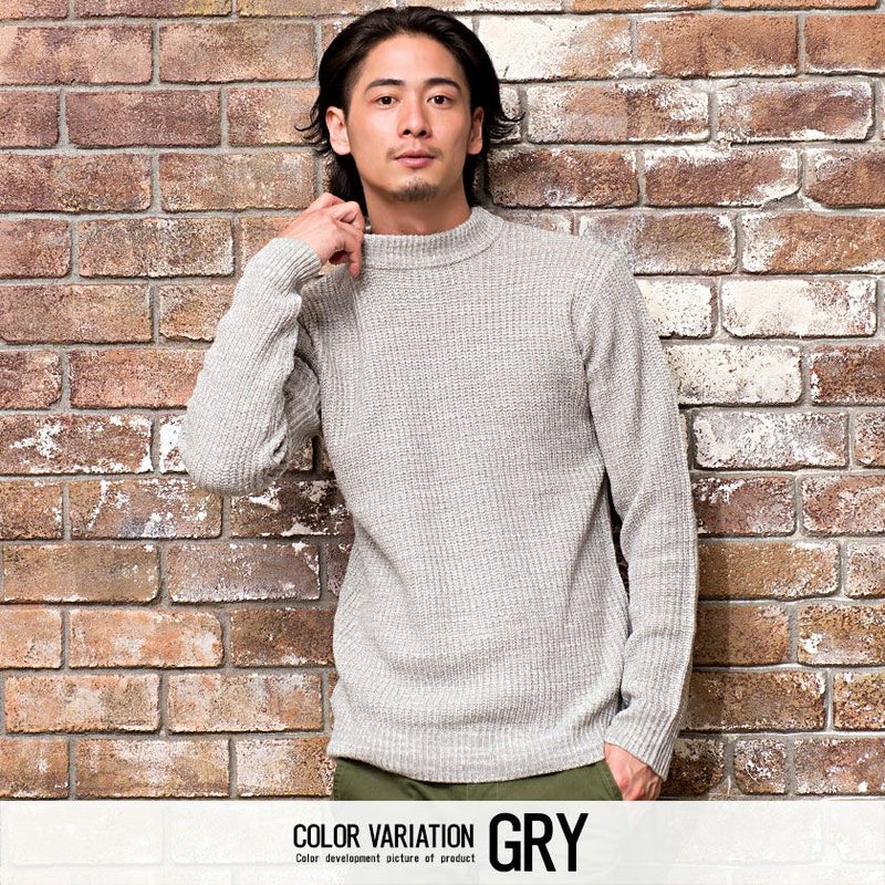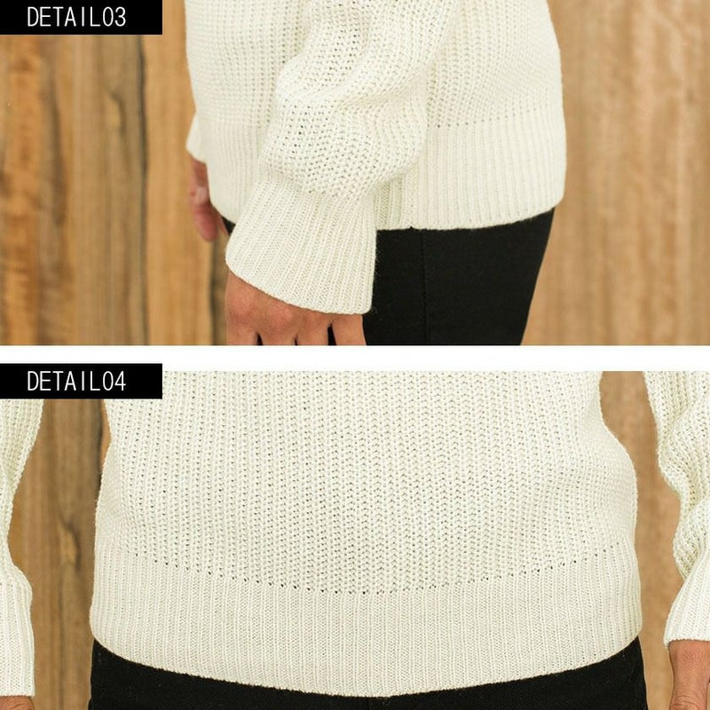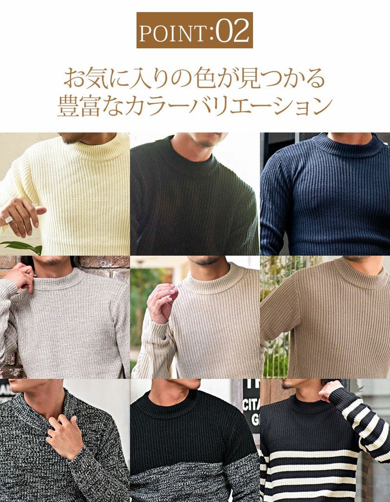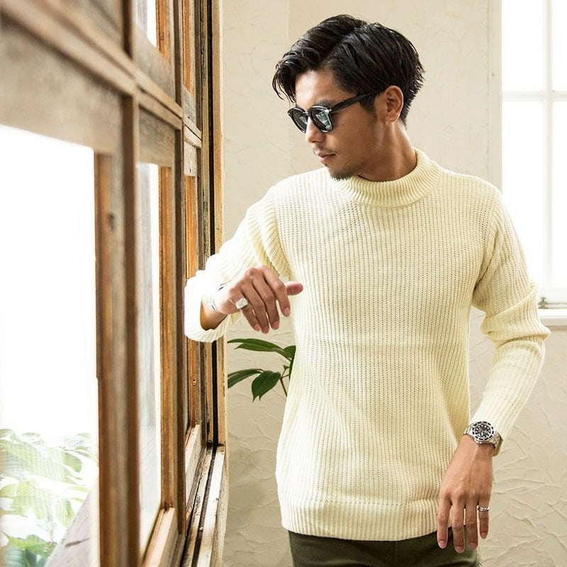 編み目の大きなローゲージニットに、程よく首元を包み込むモックネックデザインを採用。