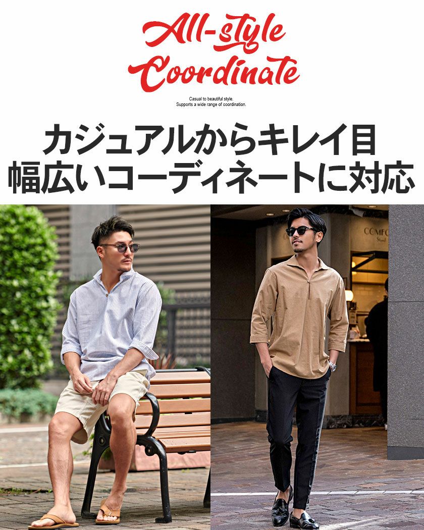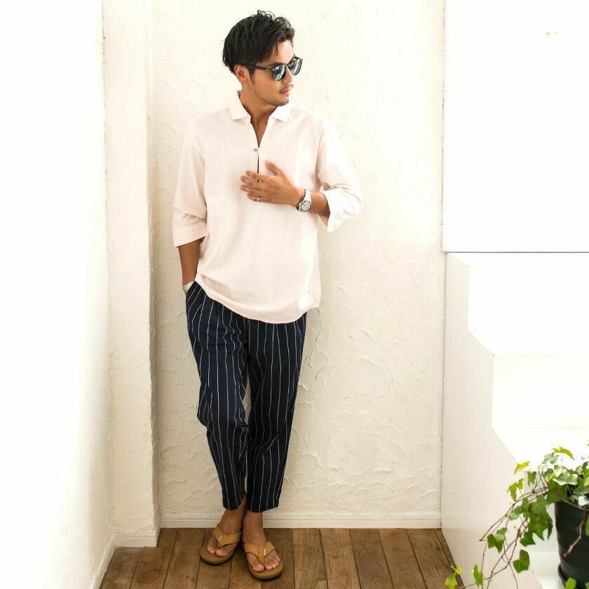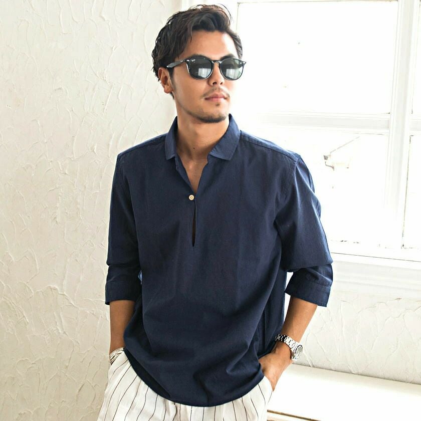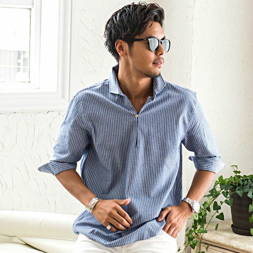 他の画像を見る メンズ シャツ 長袖 おしゃれ パナマシャツ カジュアル ブランド カプリシャツ 5分袖 五分袖 無地 ストライプ 綿100% コットン パナマ織り プルオーバーシャツ CavariA(キャバリア)パナマ織り7分袖カプリシャツ/全4色 販売価格 ¥ 4,290 税込 カートに入れる お気に入りに登録する