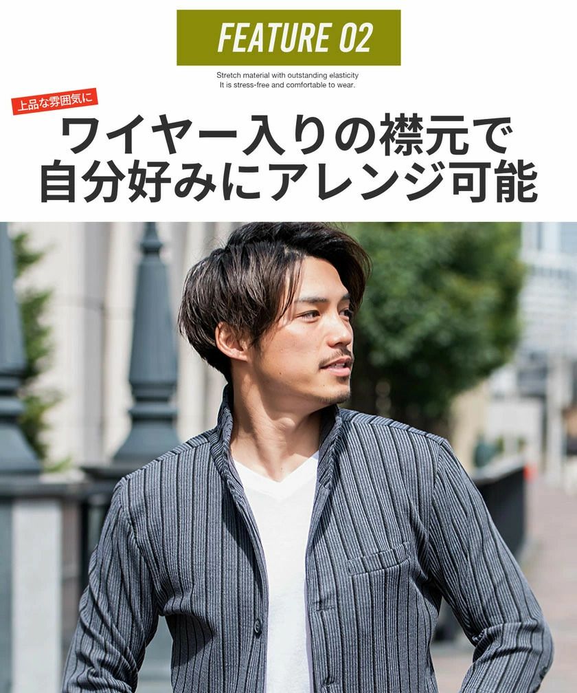 他の画像を見る ジャケット メンズ ブランド 大人 セットアップ可 ワイヤー入り イタリアンカラー テレワーク リモートワーク ストレッチ スリム 細身 M L XL きれいめ 大人カジュアル CavariA(キャバリア)ふくれストライプ7分袖ストレッチワイヤー入りイタリアンカラージャケット/全3色 販売価格 ¥ 9,790 税込 カートに入れる お気に入りに登録する