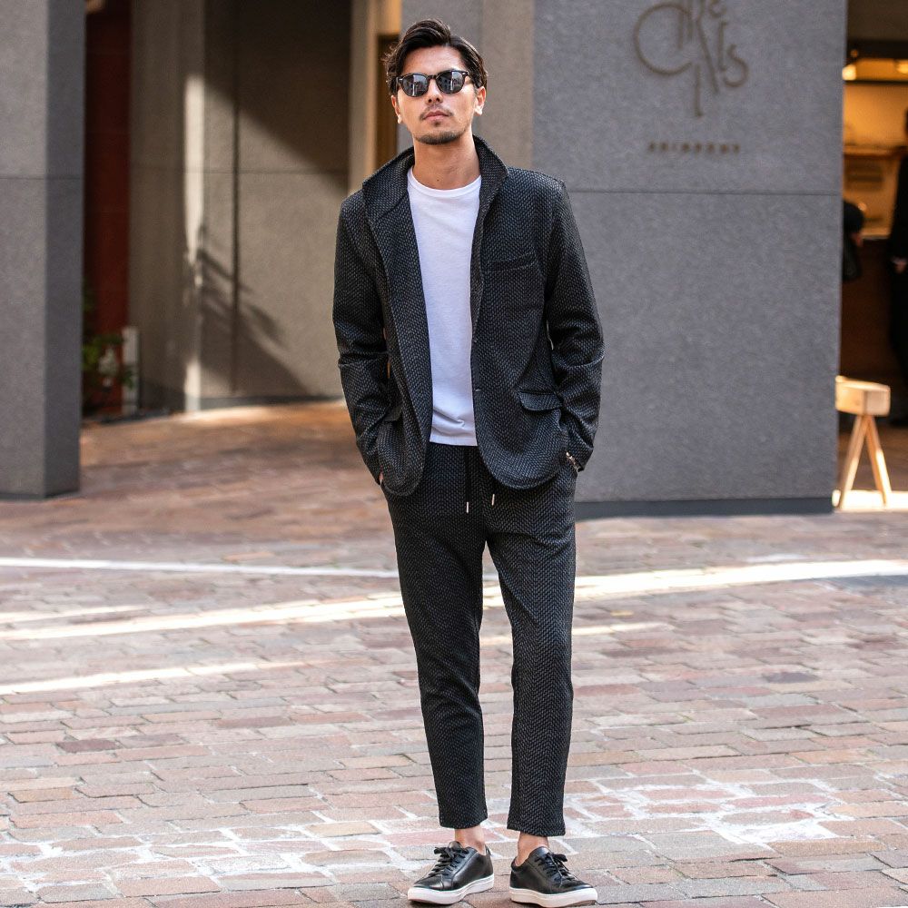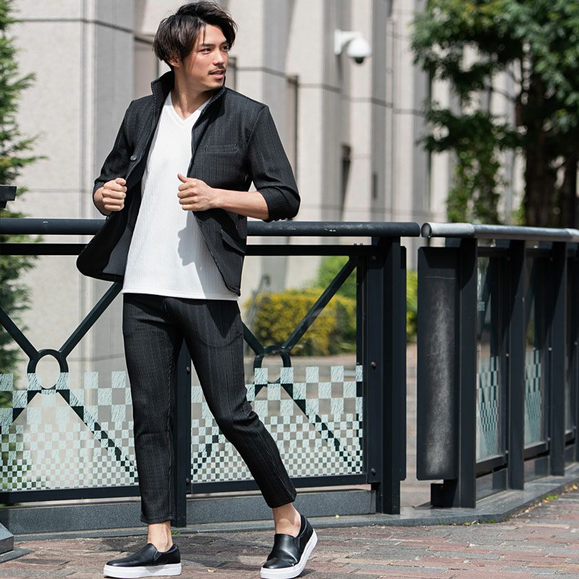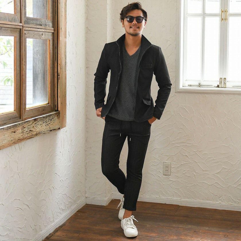 他の画像を見る セットアップ メンズ テーラードジャケット スーツ イージーパンツ テイラード ブラック ネイビー グレー 黒 紺 M L きれいめ 細身 テレワーク 在宅勤務 リモートワーク VICCI(ビッチ)カットテーラードジャケットセットアップ(フルレングスパンツ)/全4色 販売価格 ¥ 6,980 税込 カートに入れる お気に入りに登録する