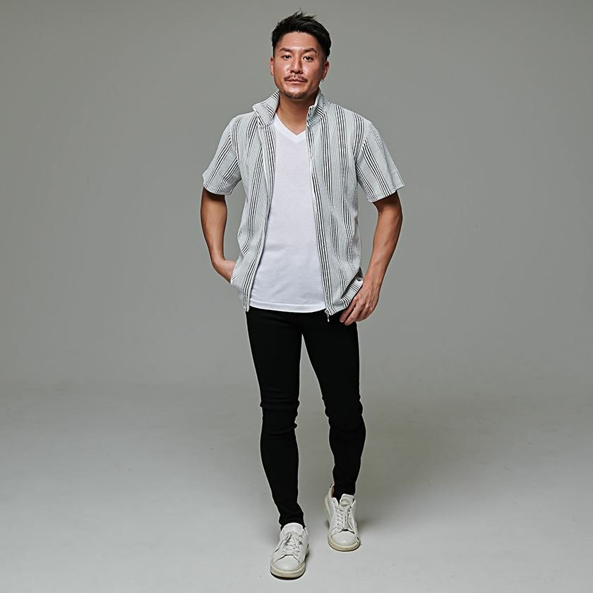 他の画像を見る スポーティーでおしゃれなブルゾン。どんなコーデにも合わせやすく、動きやすさも抜群。 CavariA(キャバリア)ふくれストライプ半袖ZIPブルゾン/全3色 販売価格 ¥ 8,690 税込 カートに入れる お気に入りに登録する