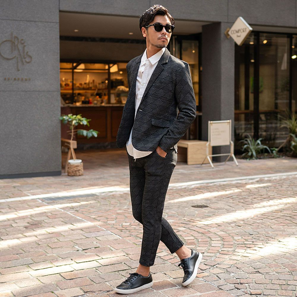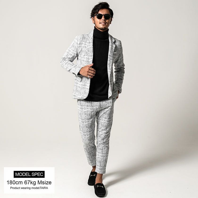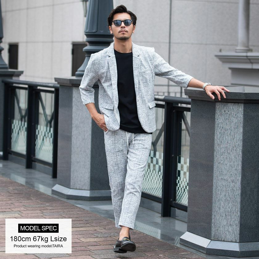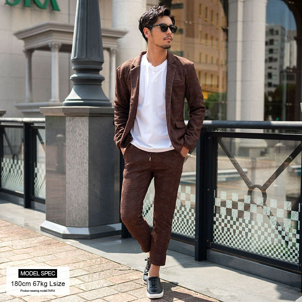 他の画像を見る 表面に凹凸のある織り柄が特徴のジャガード生地を使用し、スクエアパターンで構成された立体感のあるテーラードジャケットとアンクルパンツのセットアップ。 CavariA(キャバリア)ふくれスクエアセットアップ/全3色 販売価格 ¥ 9,900 税込 カートに入れる お気に入りに登録する