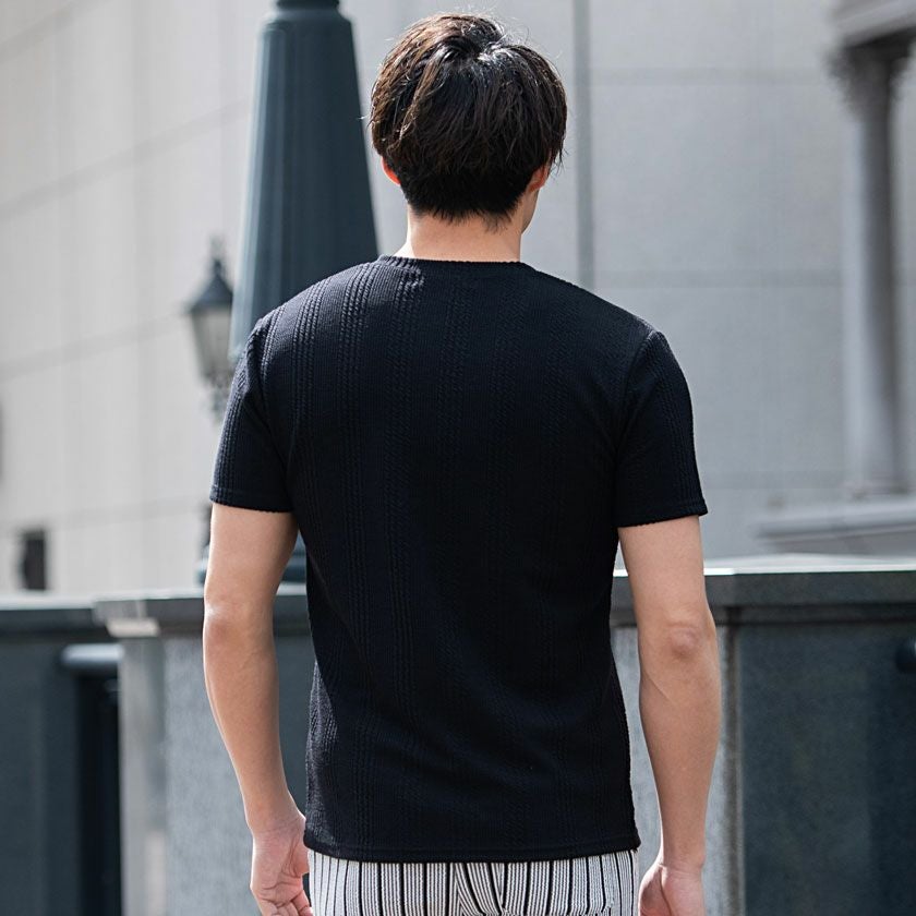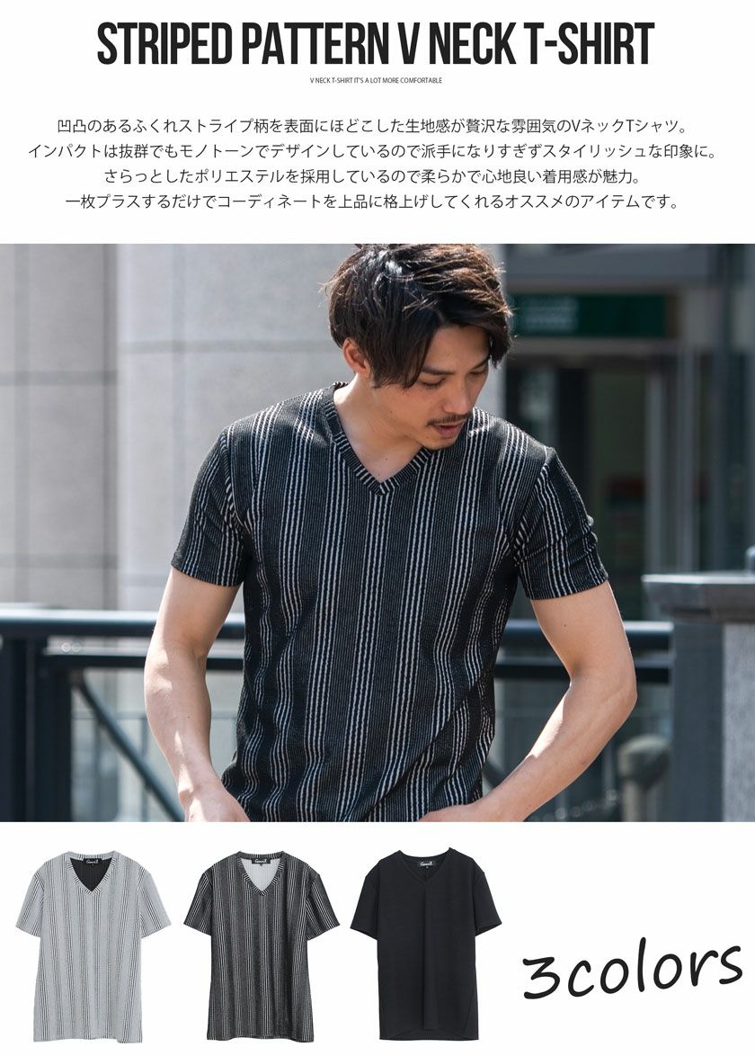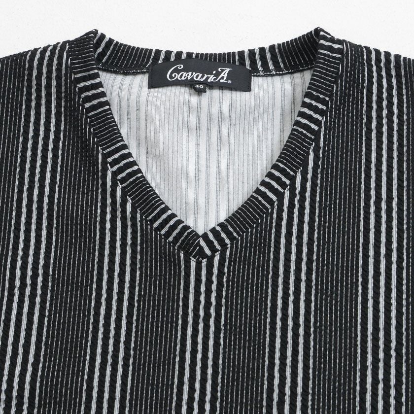 他の画像を見る Tシャツ メンズ 半袖 ストライプ柄 Vネック シンプル M L XL タイト 細身 上品 カジュアル インナー ブラック ホワイト 黒 白 ポリエステル ゴルフCavariA キャバリア 春 夏 CavariA(キャバリア)ふくれストライプ柄Vネック半袖Tシャツ/全3色 販売価格 ¥ 5,390 税込 カートに入れる お気に入りに登録する