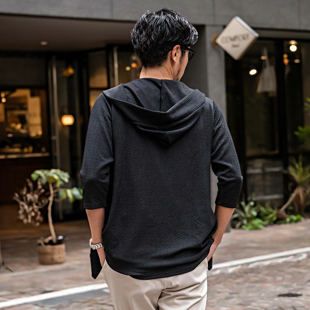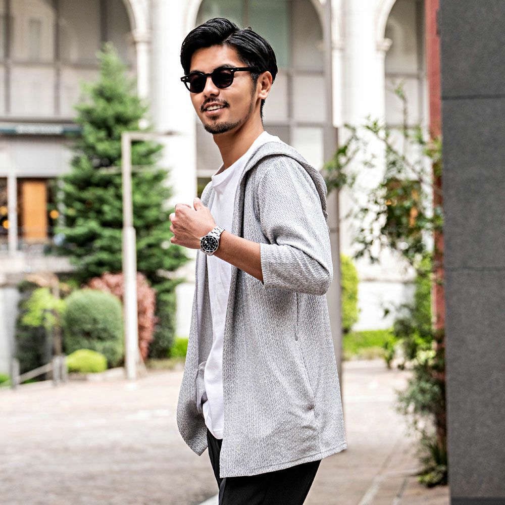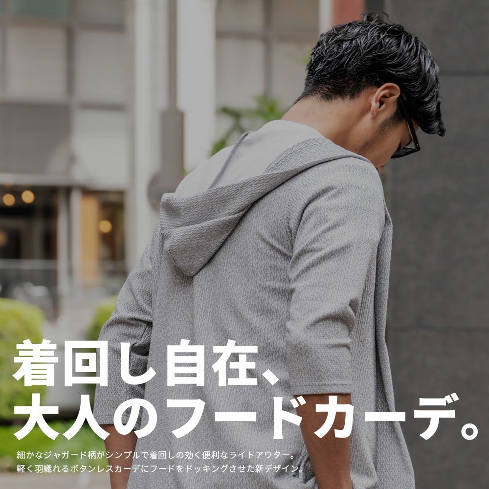 他の画像を見る 細かなジャガード柄がシンプルで着回しの効く便利なライトアウター。軽く羽織れるボタンレスカーデにフードをドッキングさせた新デザイン。 CavariA(キャバリア)ランダムジャガードフード付き7分袖カーディガン/全2色 販売価格 ¥ 8,690 税込 カートに入れる お気に入りに登録する