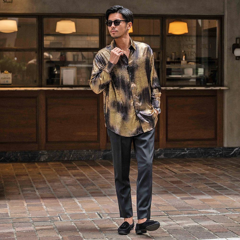 他の画像を見る シャツ メンズ ブランド おしゃれ 総柄シャツ グリッターシャツ シャイニーシャツ 大きいサイズ ゆったり 長袖シャツ 光沢 上品 大人 春 夏 ブラック ゴールド シルバーM L CavariA(キャバリア)ラメ長袖シャツ/全3色 販売価格 ¥ 9,790 税込 カートに入れる お気に入りに登録する
