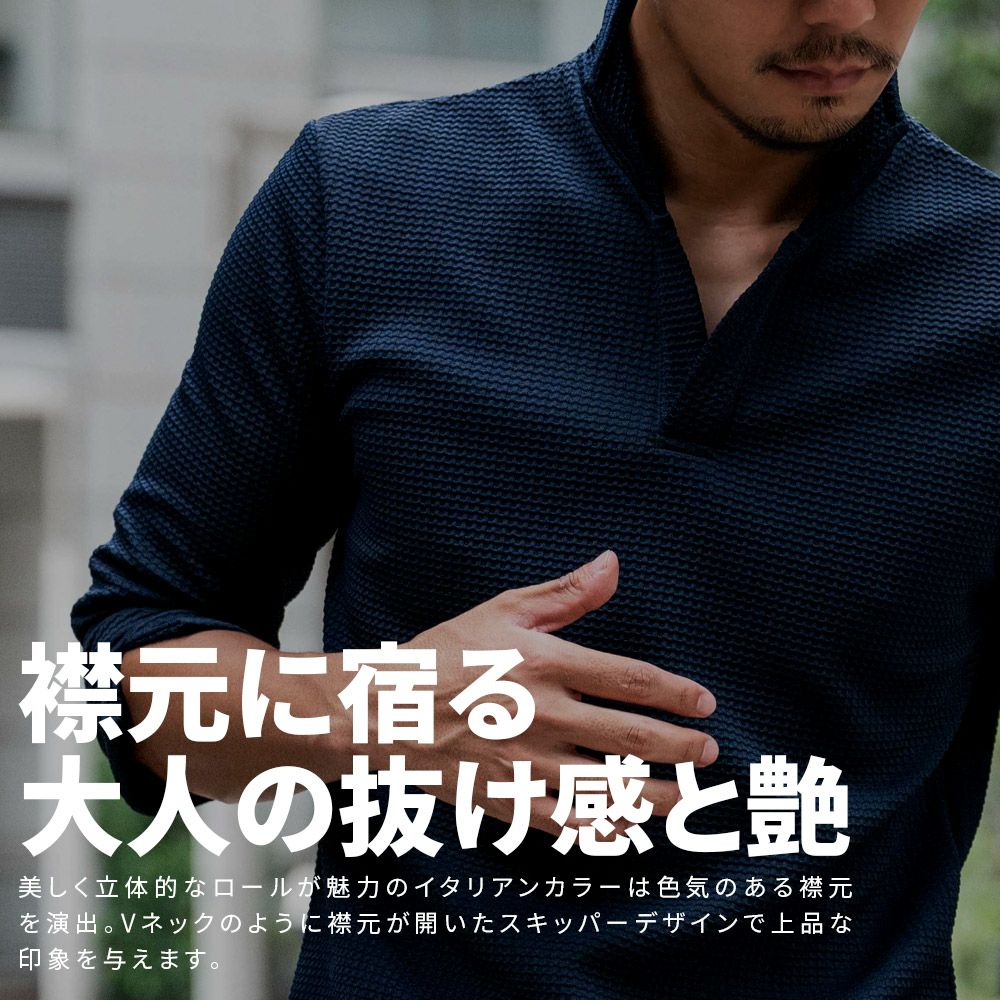 他の画像を見る ワッフル生地のポロシャツ。美しく立体的なロールが魅力のイタリアンカラーは、上品で色気のある襟元を演出。形や立ち方を変えて自分好みのスタイルが楽しめます。 CavariA(キャバリア)ふくれワッフルイタリアンカラー7分袖ポロシャツ/全3色 販売価格 ¥ 6,490 税込 カートに入れる お気に入りに登録する