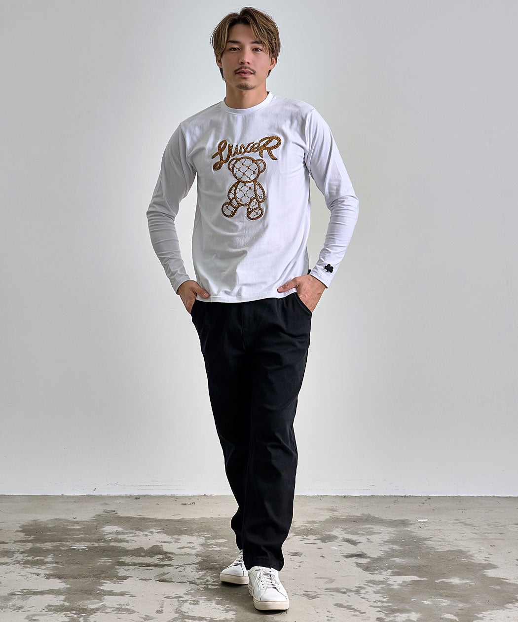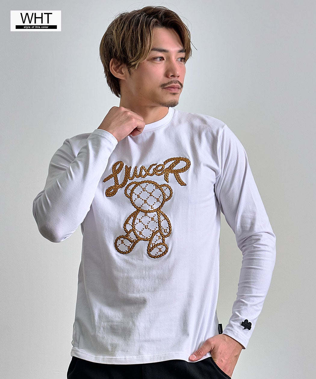 他の画像を見る フロントには、ロープ調の立体刺繍で表現されたクマモチーフとロゴを配置し、シンプルながらも一枚で主役になるデザインに仕上げました。 LUXE/R(ラグジュ)ロープ刺繍クマロンTEE/全2色 販売価格 ¥ 7,590 税込 カートに入れる お気に入りに登録する
