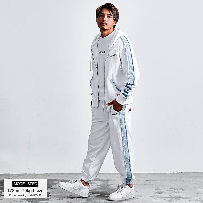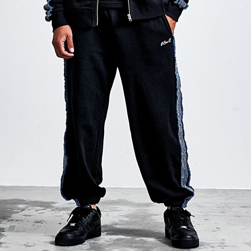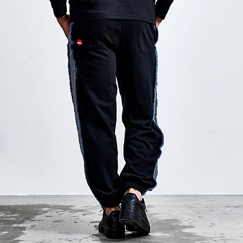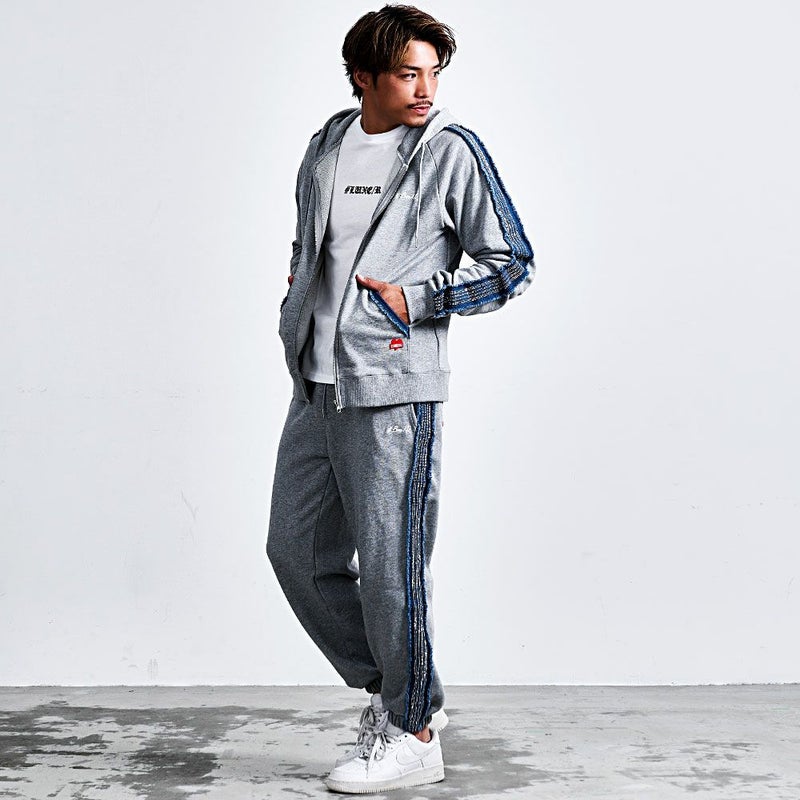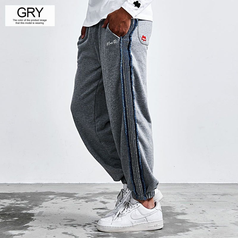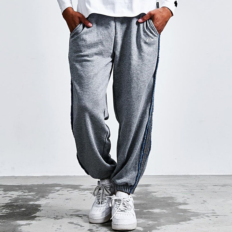 シンプルになりがちなスウェットパンツに、ひと目で分かる存在感と大人の高級感をプラスしています。