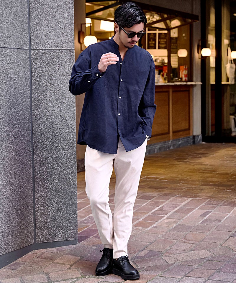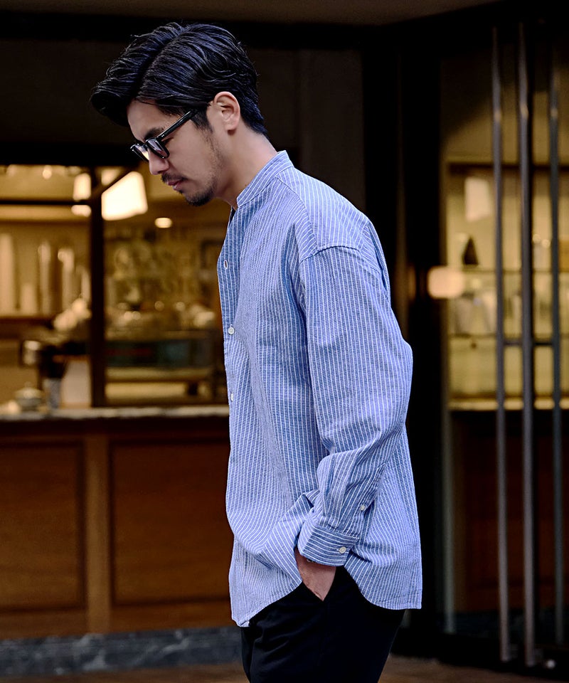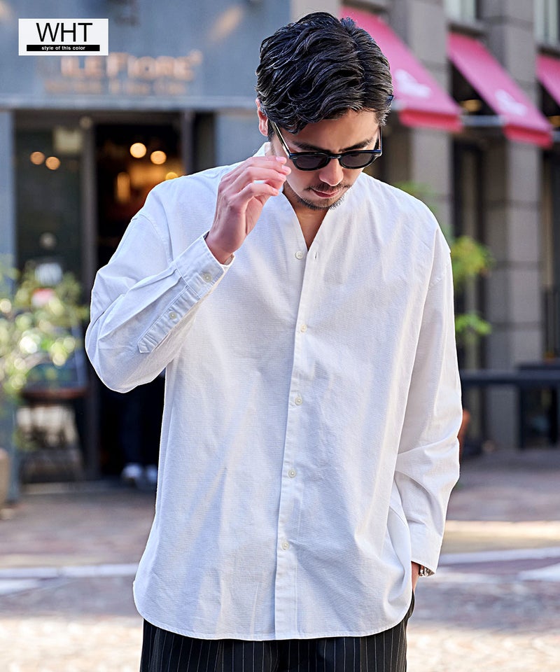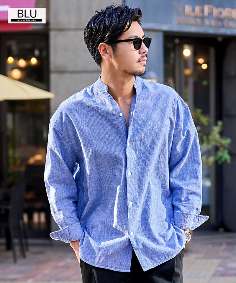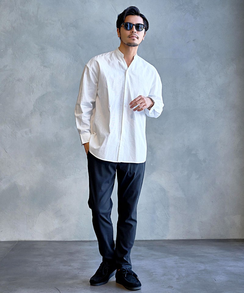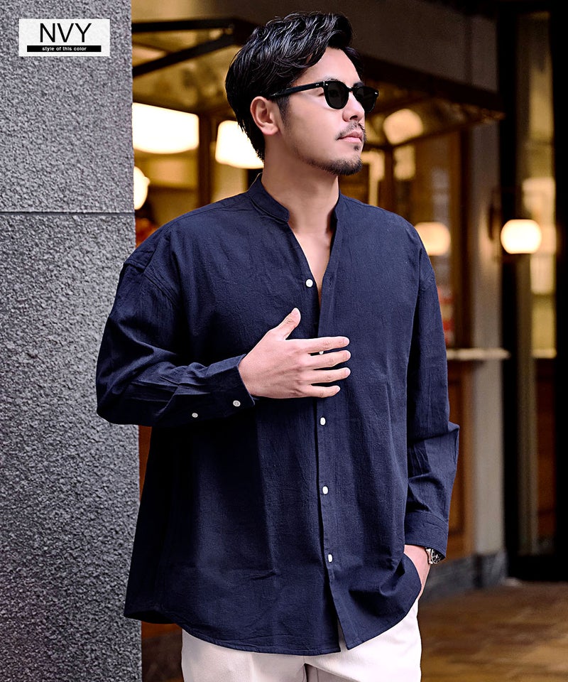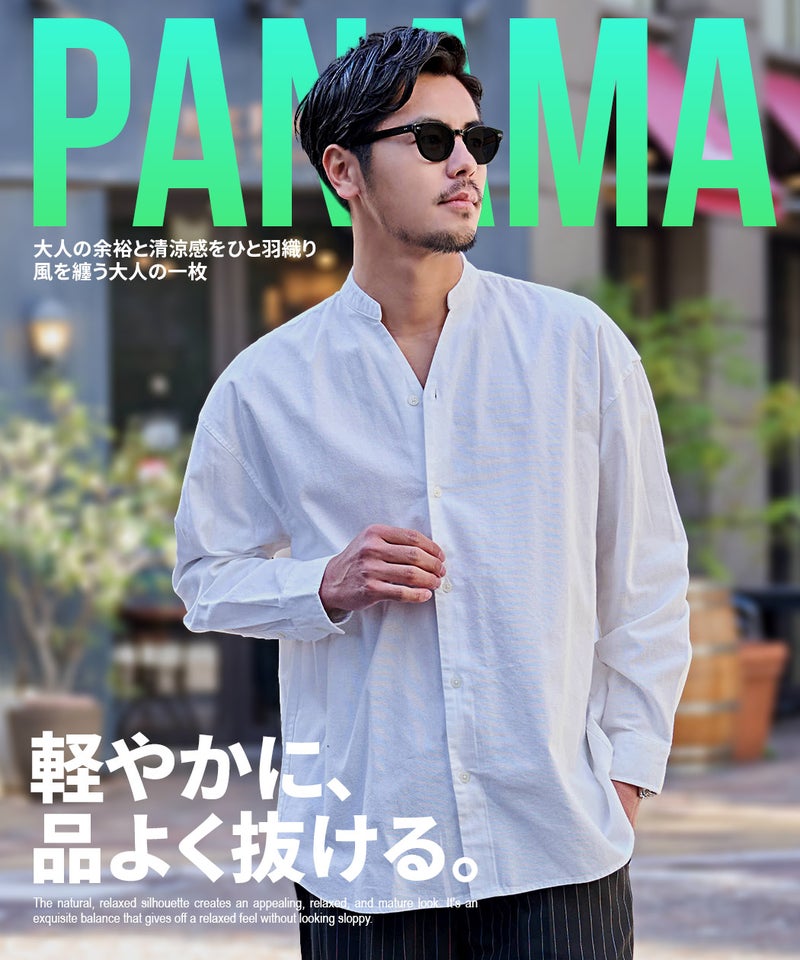 非常に軽く、丈夫で、通気性に優れたパナマ素材を使用した長袖シャツ。さらりとした肌触りで、快適な着心地を実現します。 CavariA(キャバリア)パナマ織りバンドカラースキッパー長袖シャツ/全8色
