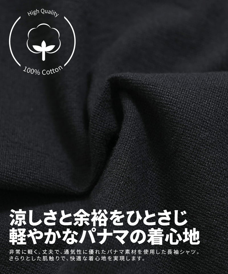 非常に軽く、丈夫で、通気性に優れたパナマ素材を使用した長袖シャツ。
