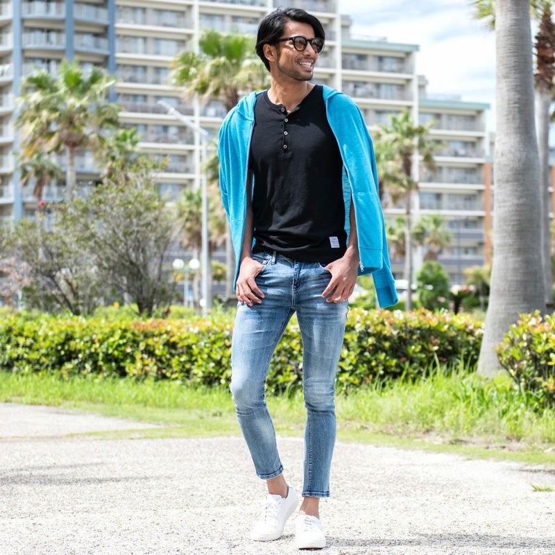 オールシーズン対応可能なスキニーパンツは幅広いコーディネートに着回しのきく一本です。