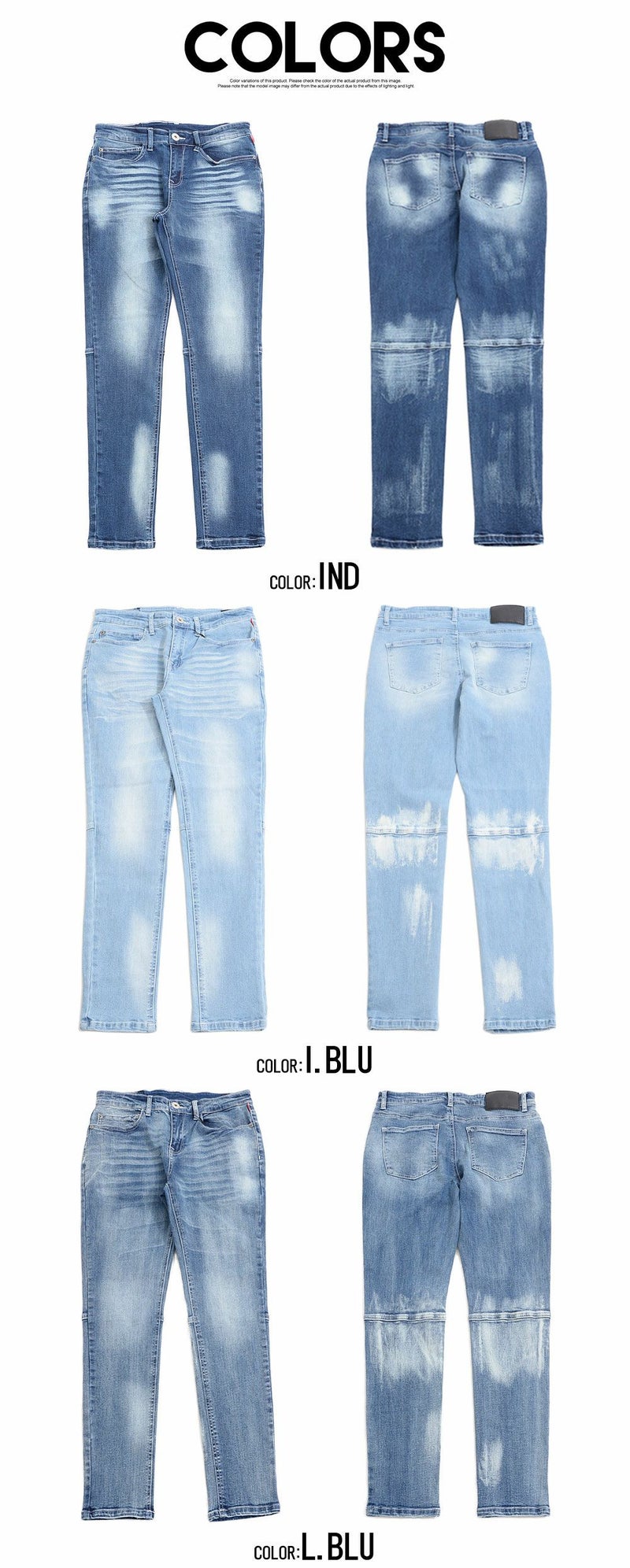 インディゴ/アイスブルー/ライトブルー/ブリーチブラック/ブラック