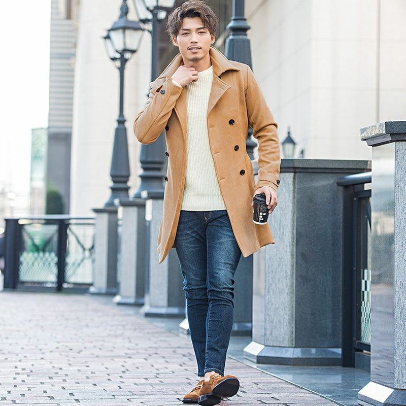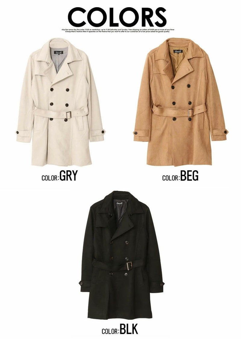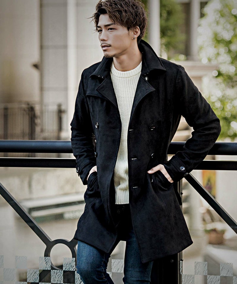 柔らかで滑らかなフェイクスウェード素材を使用した高級感溢れるトレンチコート。