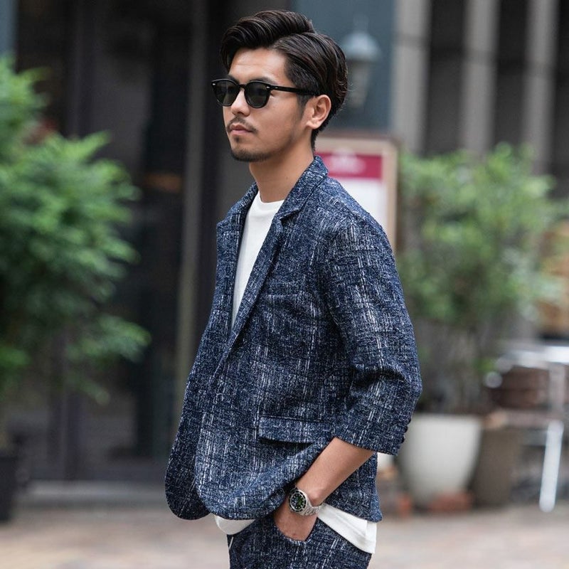 同素材のパンツと合わせたセットアップはもちろん、デニムパンツを合わせたキレイめな大人カジュアルスタイルもオススメ。