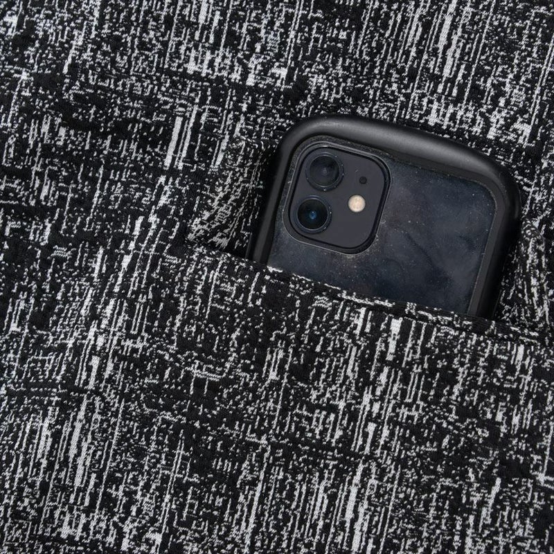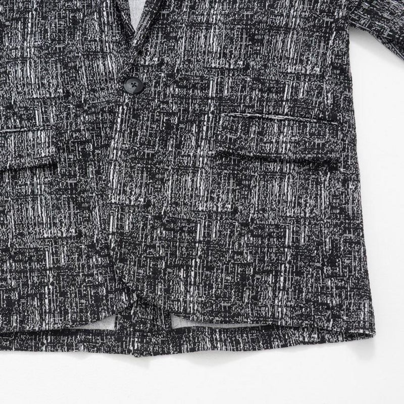 モノトーンで織りなされたモザイク柄が特徴的なジャケット。