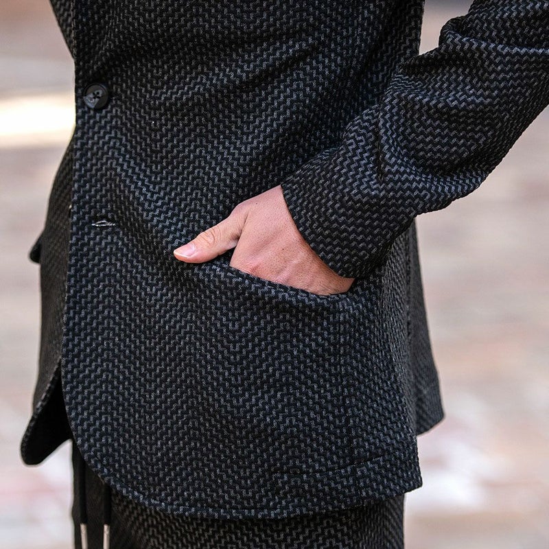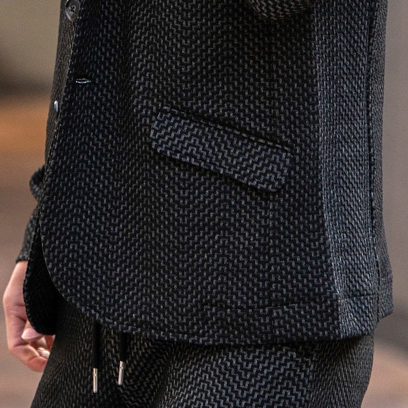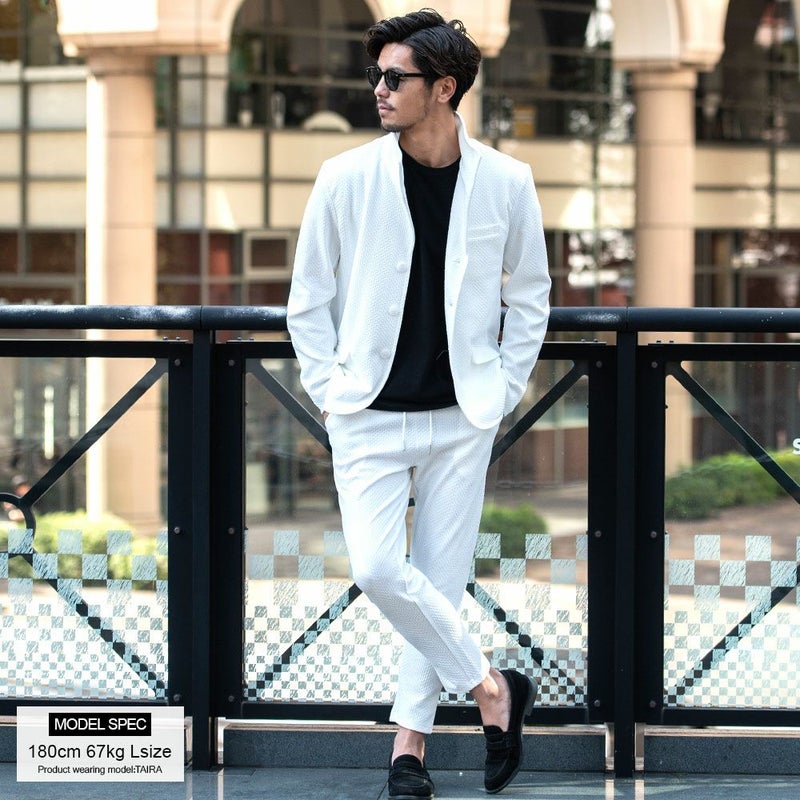 凹凸のあるふくれ生地はシンプルながら贅沢でスタイリッシュな印象を演出してくれる一着です。