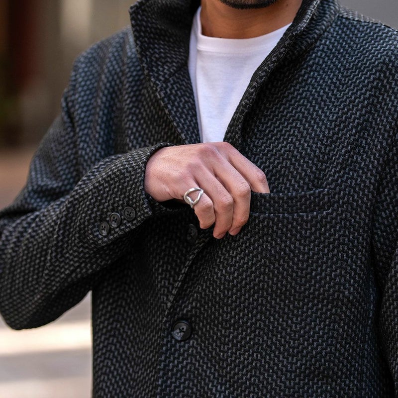 イタリアンカラーで大人っぽく上品な雰囲気に仕上げ、着る人を選ばない落ち着いた仕上がりに。