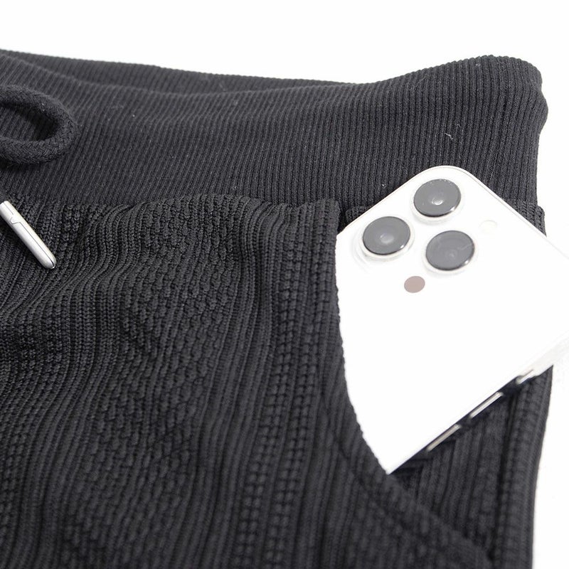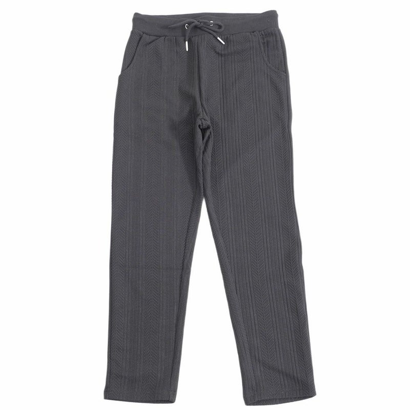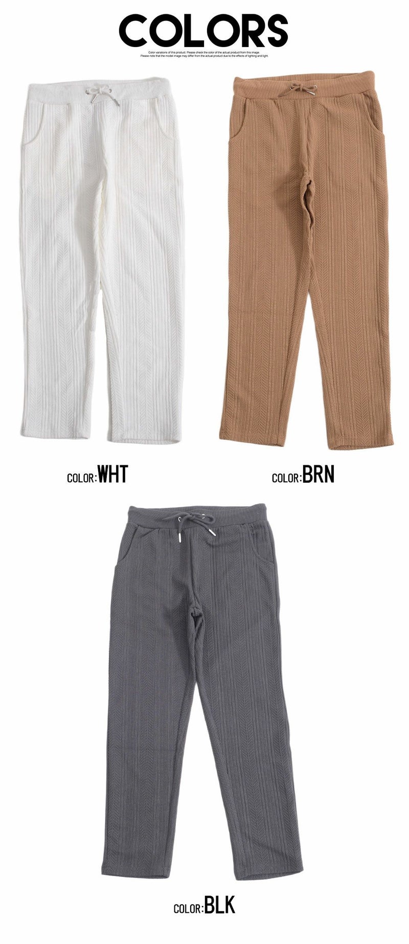 表面に凹凸のある織り目が特徴の柄を使用したニットソーパンツ。