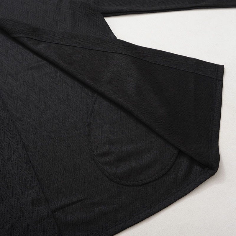 表面に施された立体感のあるシェブロン柄がスタイリングにさりげないアクセントを加え、大人のリラックスカジュアルを演出します。