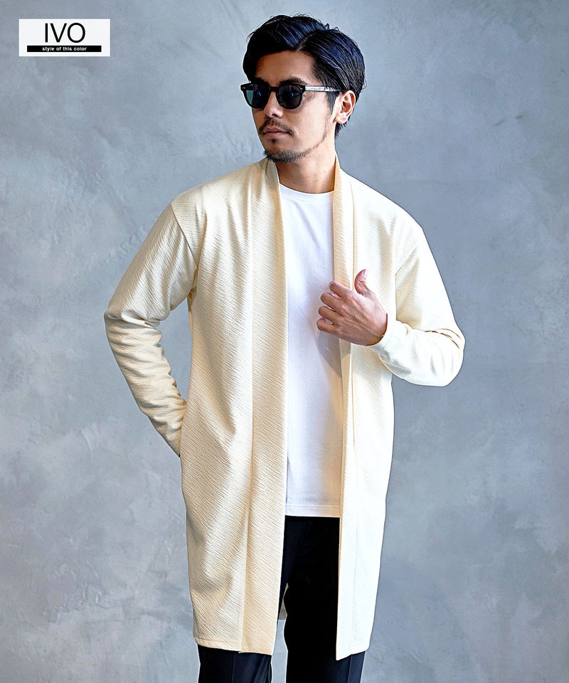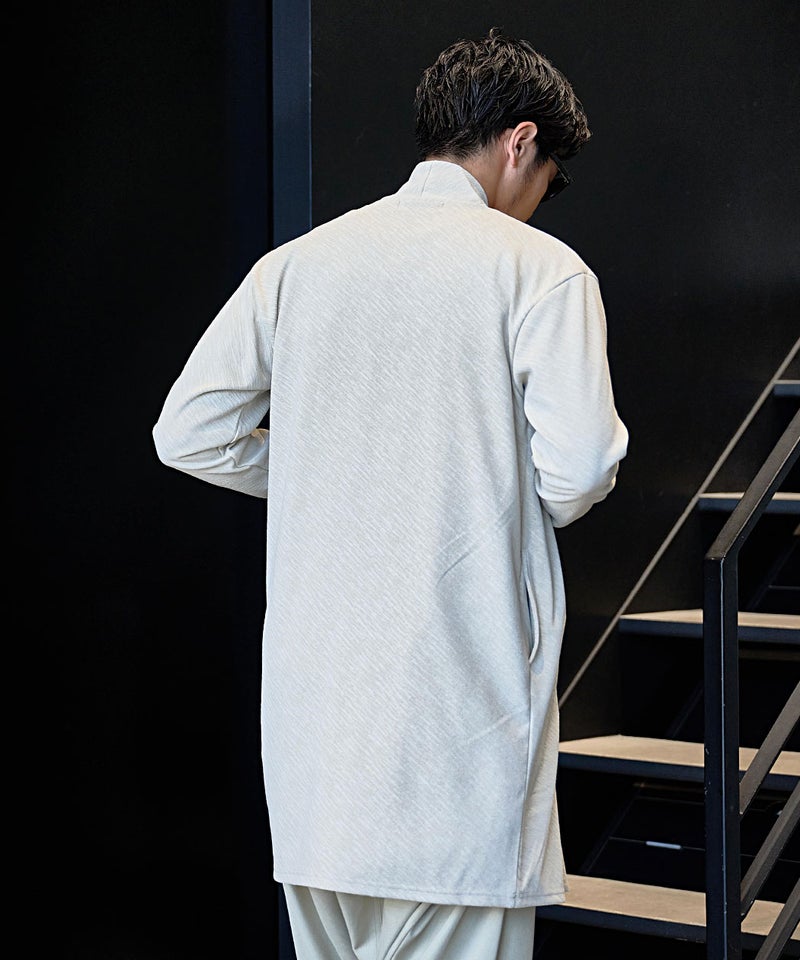 立体感のある斜めジャガード織りが、さりげない大人の表情を演出するショールガウン。