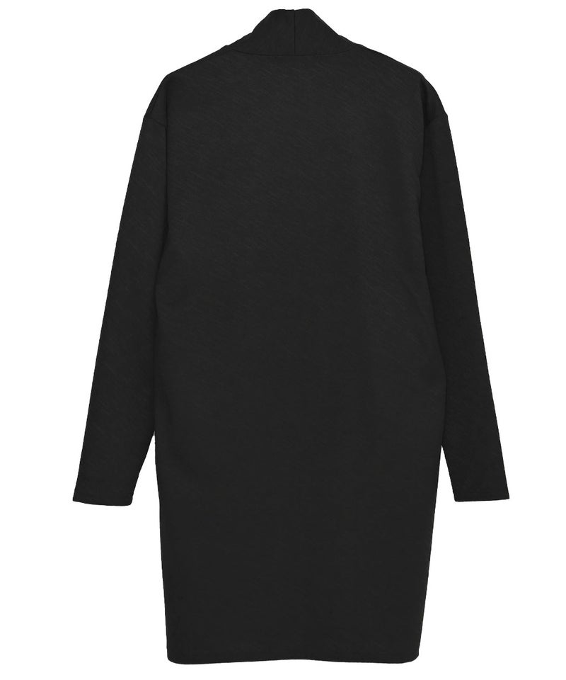 ショールカラーが首元に自然なドレープを生み、落ち着いた雰囲気を演出します。