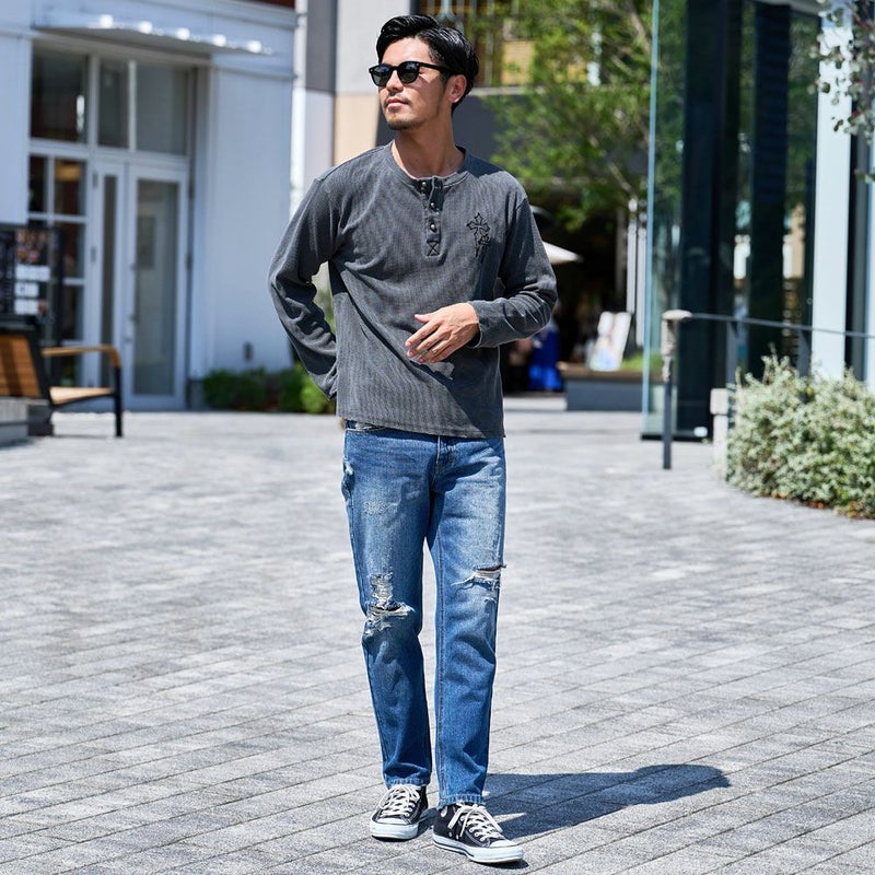 着るだけでこなれ感が出るデザインは、ストリート系やモード系、ロックテイストのコーディネートにも相性抜群。