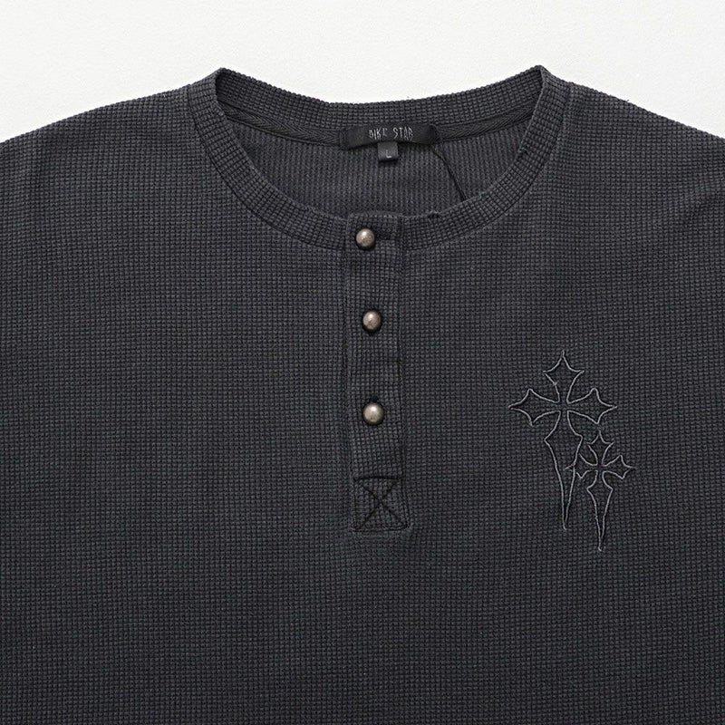BITTER STORE(ビターストア)にBitter select【ビターセレクト】ヴィンテージ風クロス刺繍ワッフルダメージロンTが登場しました。