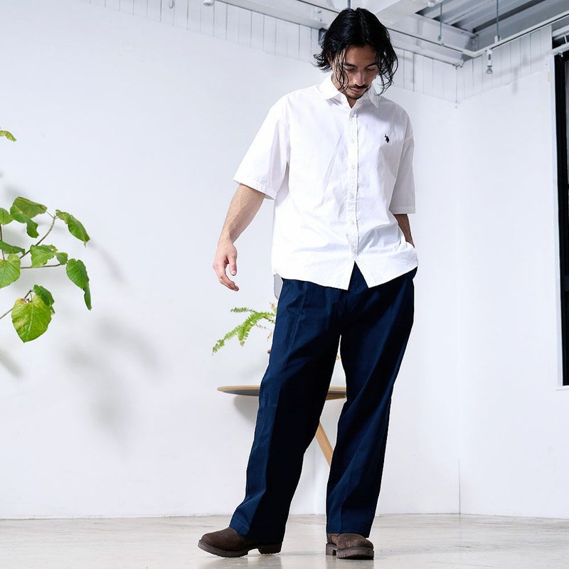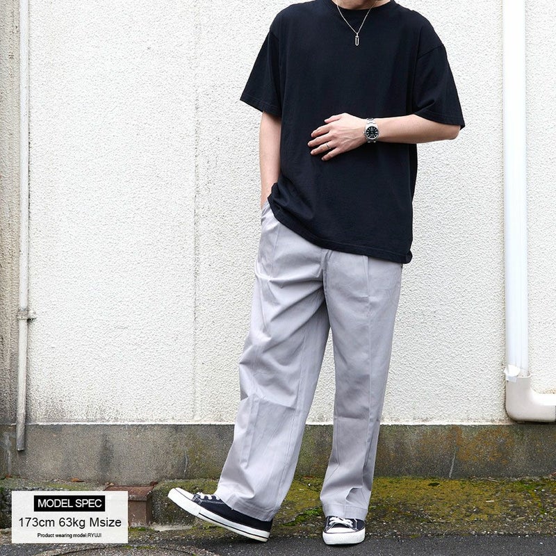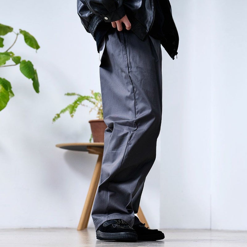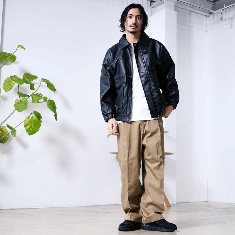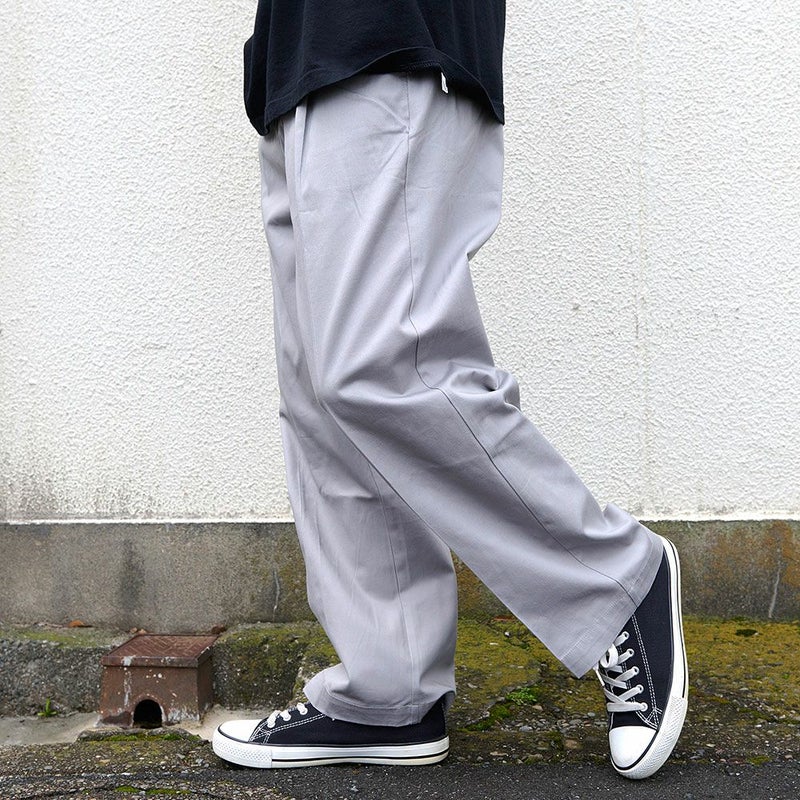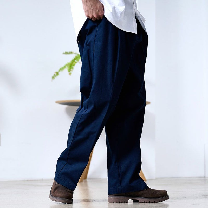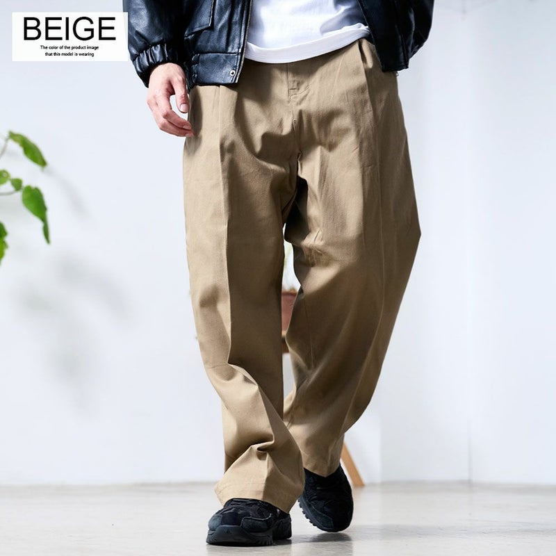 トレンドのワイドシルエットで、カジュアルにもきれいめにも着こなせるチノパンツ。